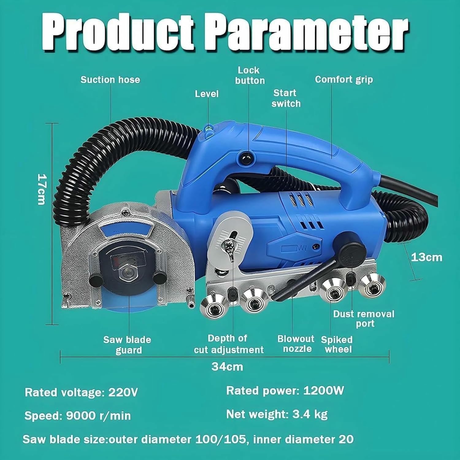 Friendly Design:The dust is sucked directly into the dust bag with its own vacuum cleaner,without the need to connect another vacuum cleaner.The cutting depth can be adjusted by loosening it,and the cut will automatically rise when the machine is turned off.