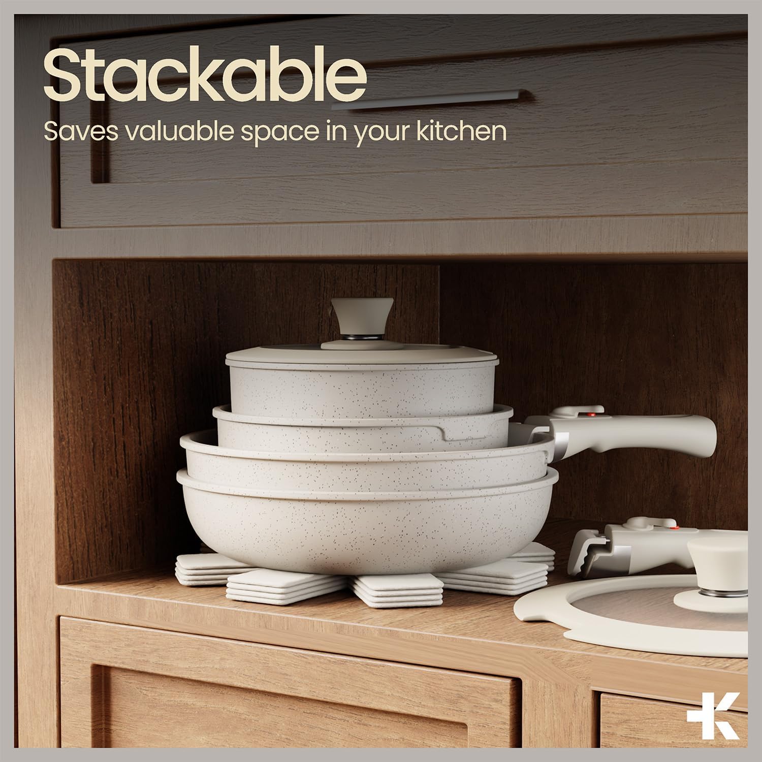 EASY AND CONVENIENT: Cooking is made easier with the cool-touch detachable handles. Carefully engineered, they guarantee a burn-free grip. There is more! The crystal-clear tempered glass lids allow you to keep an eye on the food at all times. We also cared about making the pots easy to wash, to avoid any cleaning nightmare.