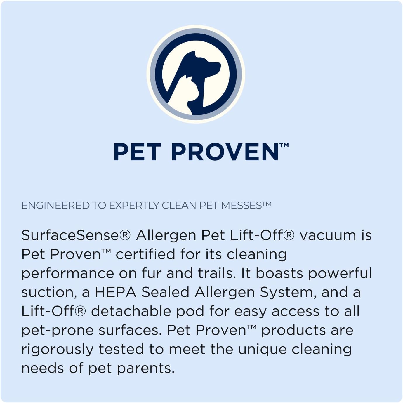 BISSELL SurfaceSense Allergen Lift-Off Pet vacuum uses advanced technology which offers you a quick, automatic and hands-free transition for optimal cleaning performance on any floor type. Plus, the Tangle-Free, Multi-Surface Brush Roll has stiff bristles for cleaning carpet and soft bristles for vacuuming hard floors, so it can pick up everything from fine dust to larger debris. You can now easily switch from a powerful upright vacuum to a detachable, portable canister to conveniently clean hard to reach areas, high and low. This machine helps capture and hold dust and allergens1 inside the vacuum so they don’t escape back into the air you breathe with our Sealed HEPA Allergen System. You can feel confident tackling any mess with this versatile vacuum, and when you buy a BISSELL® product, you help save pets, too. BISSELL proudly supports BISSELL Pet Foundation and its mission to help save homeless pets. We’re proud to design products that help make pet messes, odors and pet homelessness disappear.