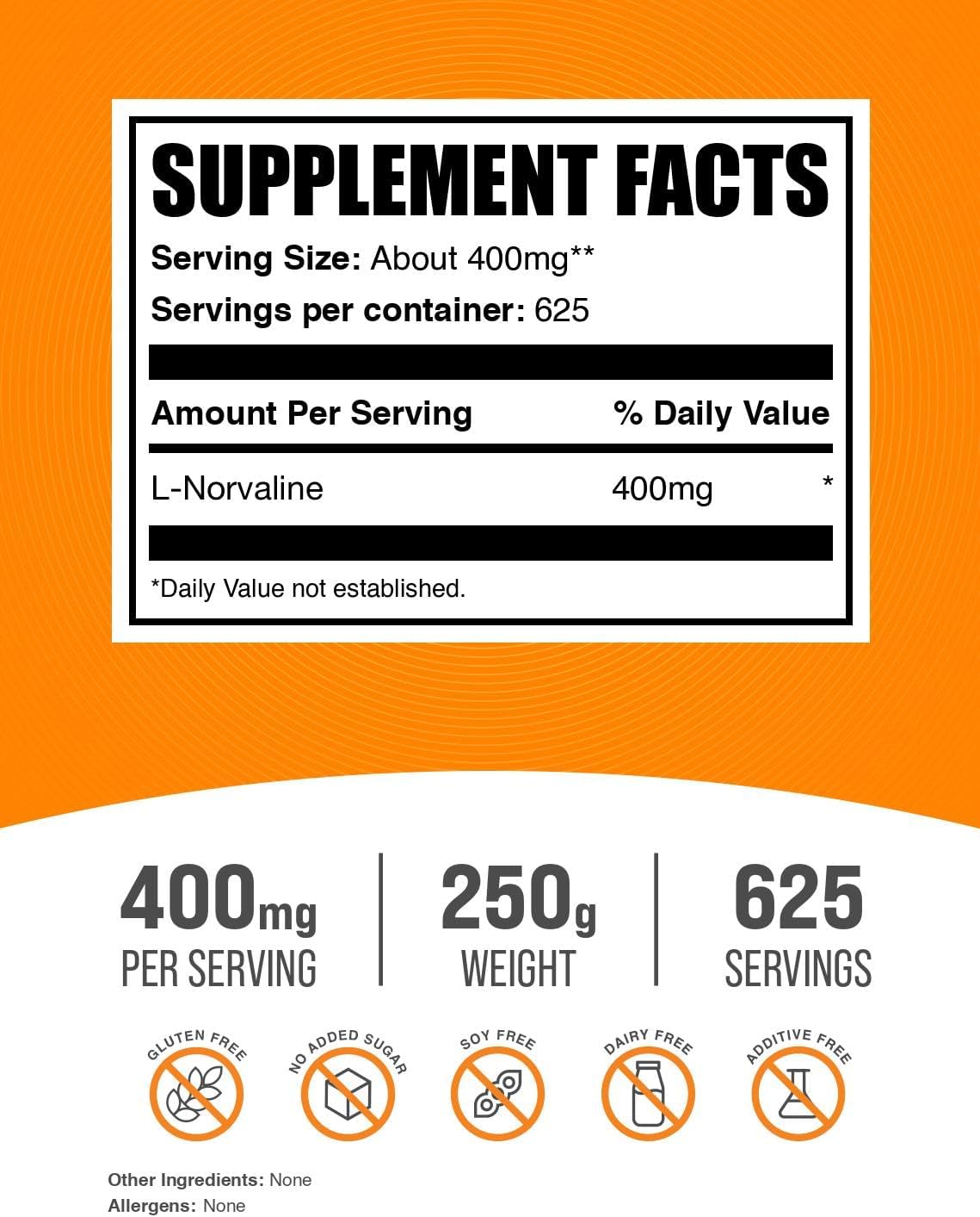 Optimized in every Serving: Our L-Norvaline 400mg powder is unflavored and free of unnecessary allergens, offering you a high-quality product that easily integrates with other supplements or your preferred shake or beverage.