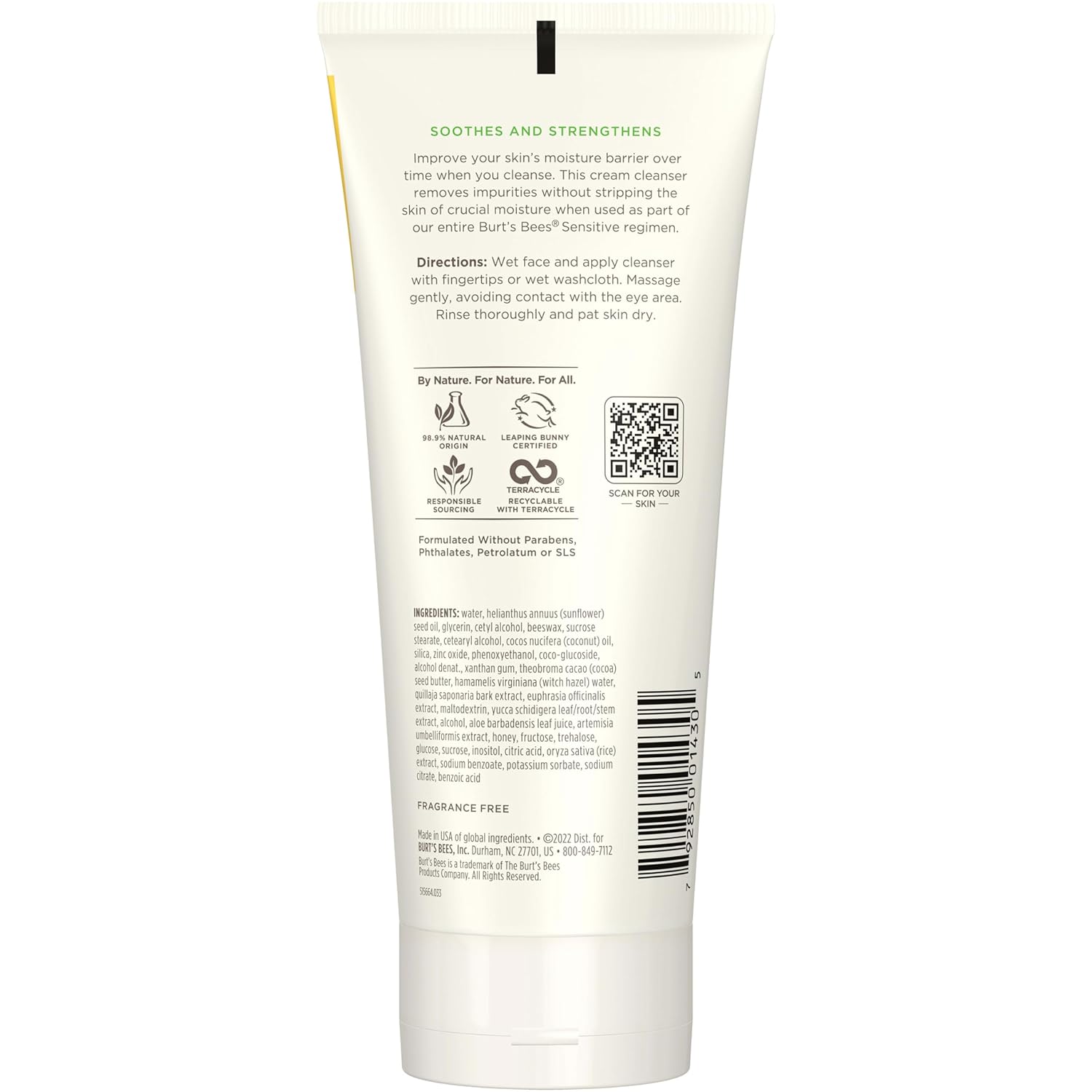 LEAPING BUNNY CERTIFIED: This Burt’s Bees cream cleanser for sensitive skin is Leaping Bunny Certified, which means the product is never tested on animals