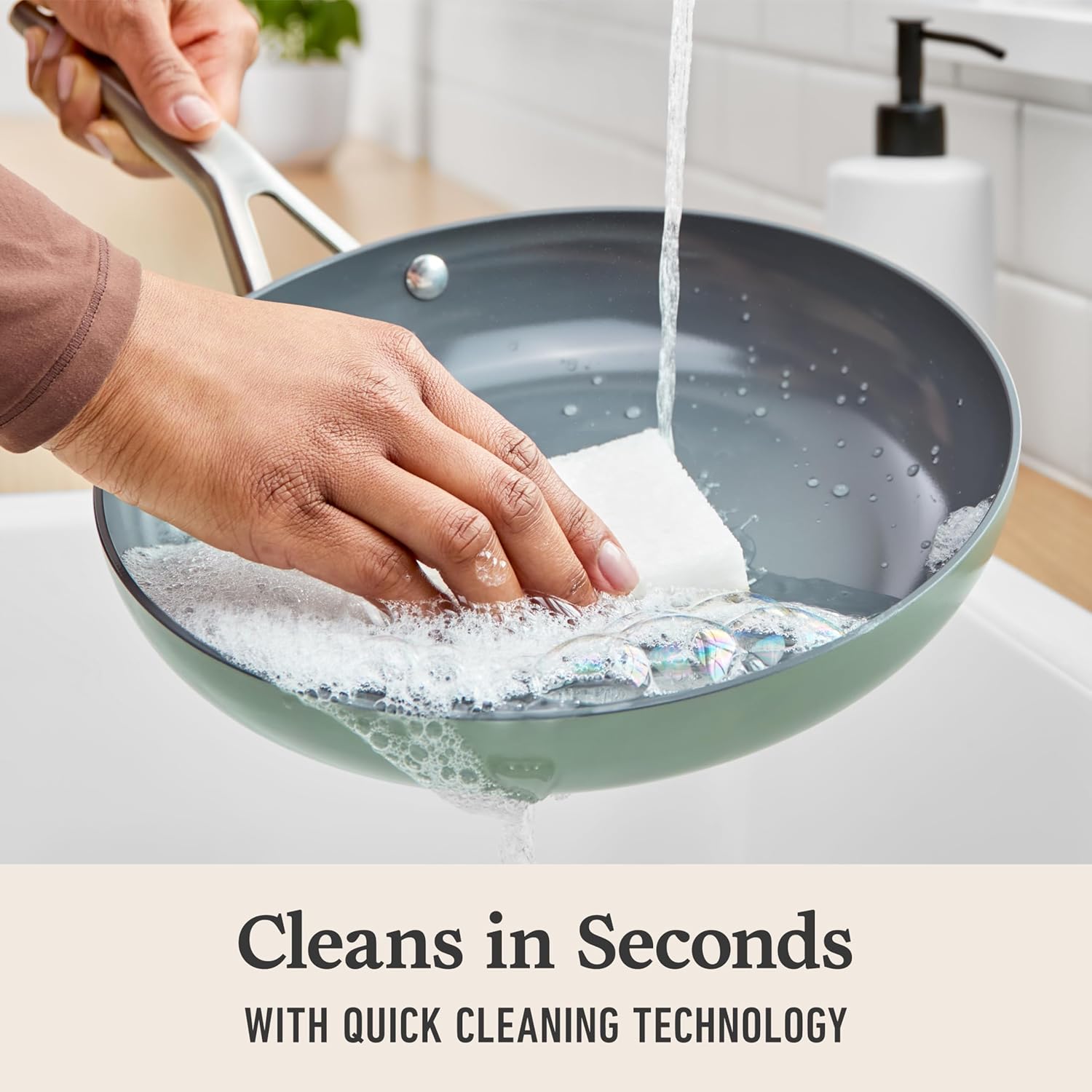 Cookware Cleans in Seconds with Quick Cleaning Technology: Nonstick surface keeps foods from sticking so you can spend more time cooking, less time cleaning.