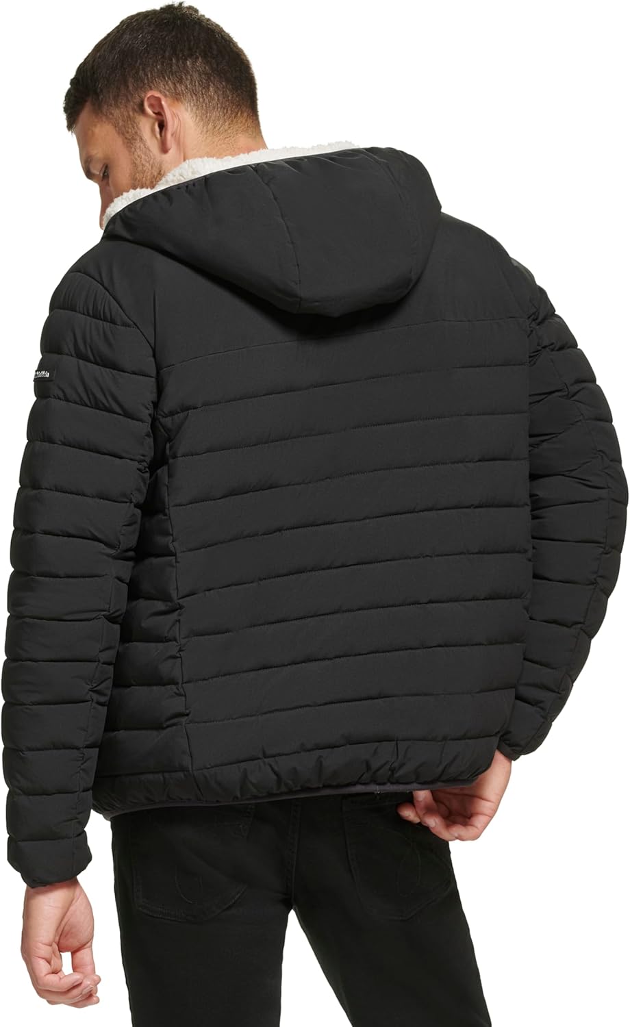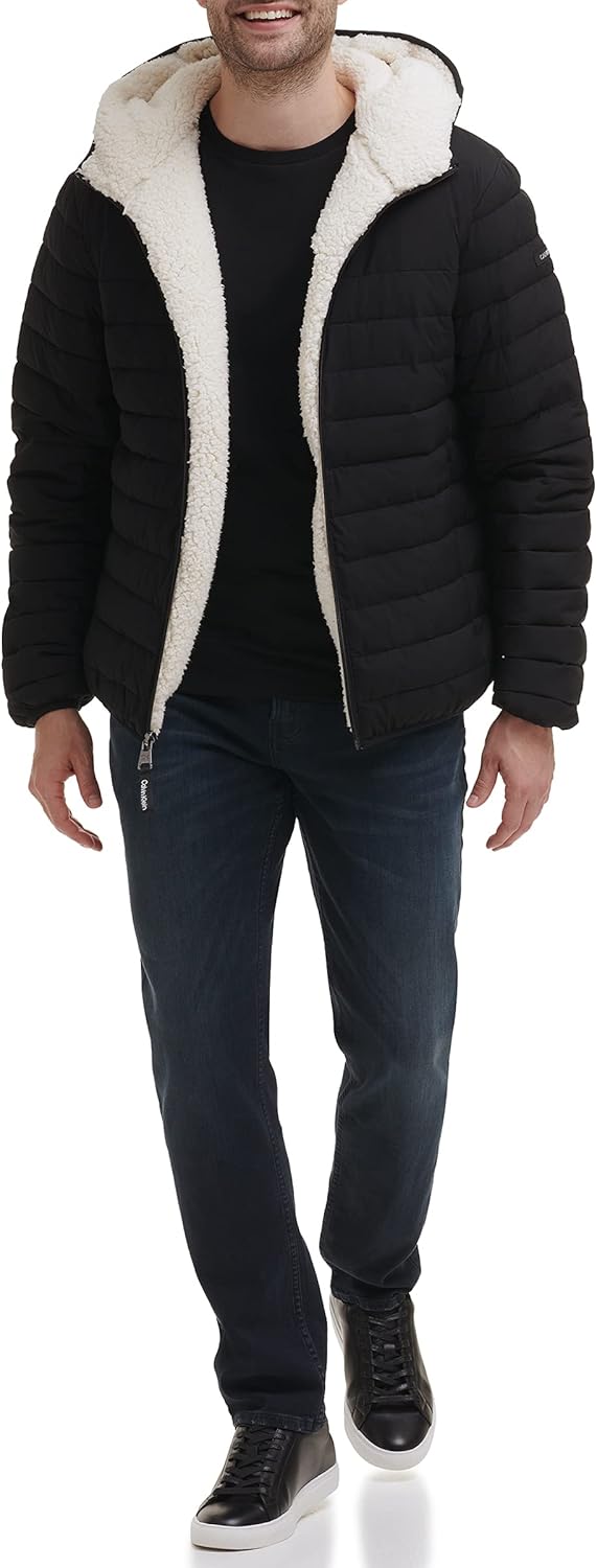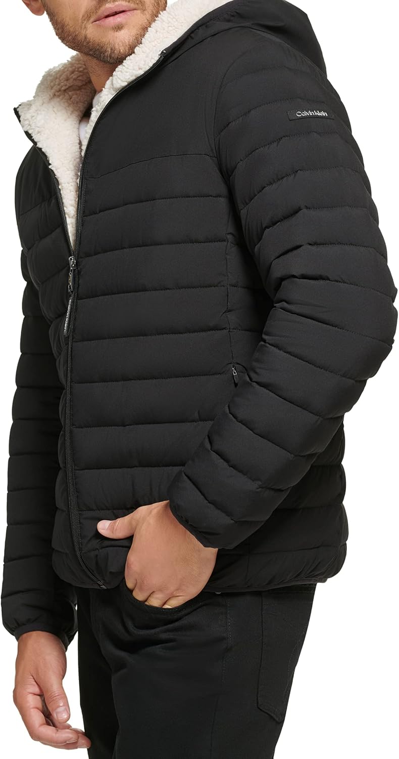 Calvin Klein Men’s Lightweight Packable Down Jacket With Fleece Bib and Removable Hood