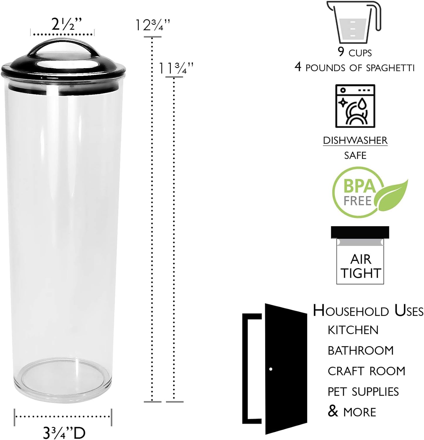 Description: Bring a touch of style and practicality to your kitchen with this chic clear acrylic canister! Designed to keep your pasta fresh, it features an airtight lid that seals in the goodness.