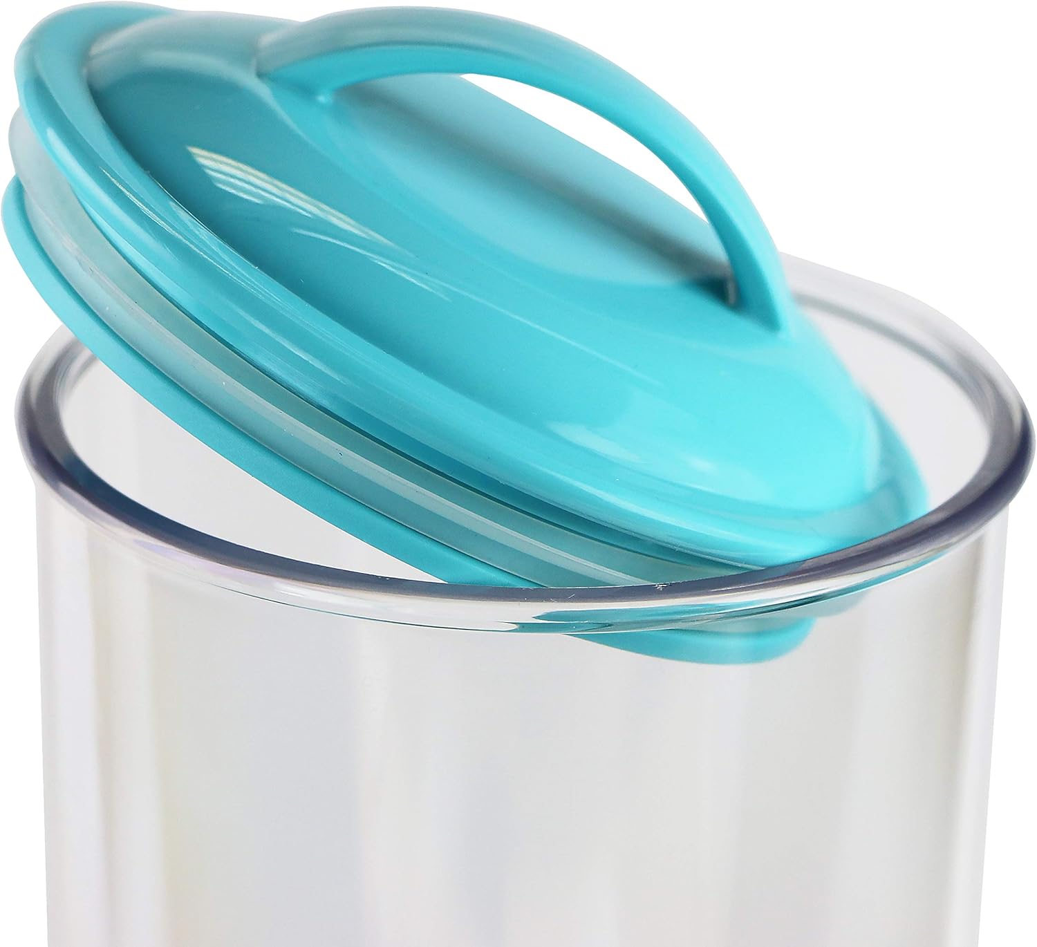 Reston Lloyd is a leading manufacturer and distributor of kitchenware, specializing in enamel on steel products. For nearly 30 years, they have been dedicated to providing the highest quality products, with an equal emphasis on superior customer service. Reston Lloyd provides a wide variety of household goods that coordinate with patterns of popular dinnerware manufacturers. Reston Lloyd’s Calypso Basic line was created to make their everyday useful kitchenwares, into fun and bright colors. Reston Lloyd brought bright colors onto the market over 40 years ago and continues to add new colors. Reston Lloyd only uses the current trending colors to ensure you are offered the best coordinating houseware items. While some colors are replaced by others from year to year, one thing remains the same, which is variety. Reston Lloyd is one of the only manufacturers who have over 12 standard colors at one time. Calypso Basics includes items such as enamel on steel or powdered coated colanders in FIVE sizes! The collection also contains, batter bowls, microwave cookware set, enamel cookware, acrylic storage, melamine utensil, and more! Start collecting your favorite color today and see what a little color can do for you. The clear acrylic canisters are great for storing foods, craft supplies, baking supplies, bathroom supplies, and pet supplies. Without the lid the canisters can even be used as a utensil holder. Each lid has an airtight seal to keep your food fresh with a durable plastic handle for easy opening. Each canister has a colorful lid to match your kitchen and dinnerware decor. The set includes 3 canisters which measures 72 oz. (8 3/4 cups), 40 oz. (5 cups), 28 oz. (3 1/2 cups). BPA free and dishwasher safe.
