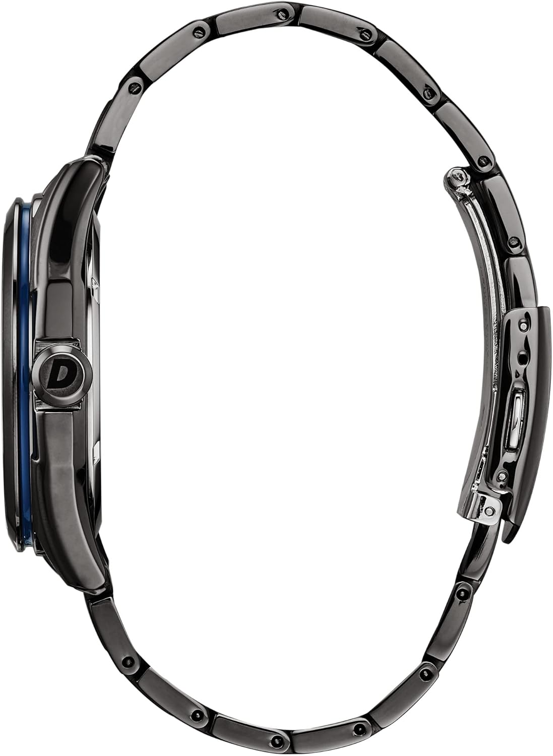 An edgy structure in a classic setting, this Drive from Citizen WDR watch features a deep gray ion-plated stainless steel case and bracelet with a denim blue dial and date. Featuring our Eco-Drive technology – powered by light, any light. Never needs a battery. Caliber number J810.