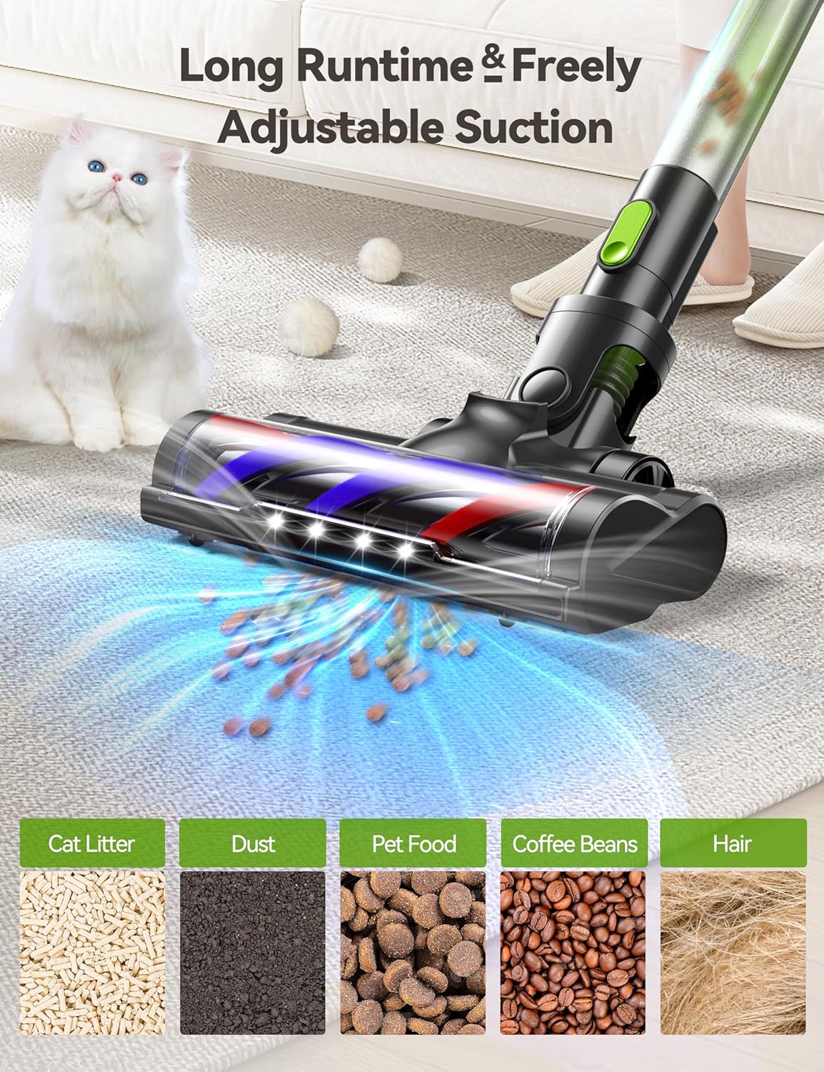 Cordless Vacuum Cleaner with 23Kpa Powerful Vacuum Cleaners, 3 Modes and 45 Mins Runtime, Powerful Vacuum Cleaner for Home Pet Car-Green