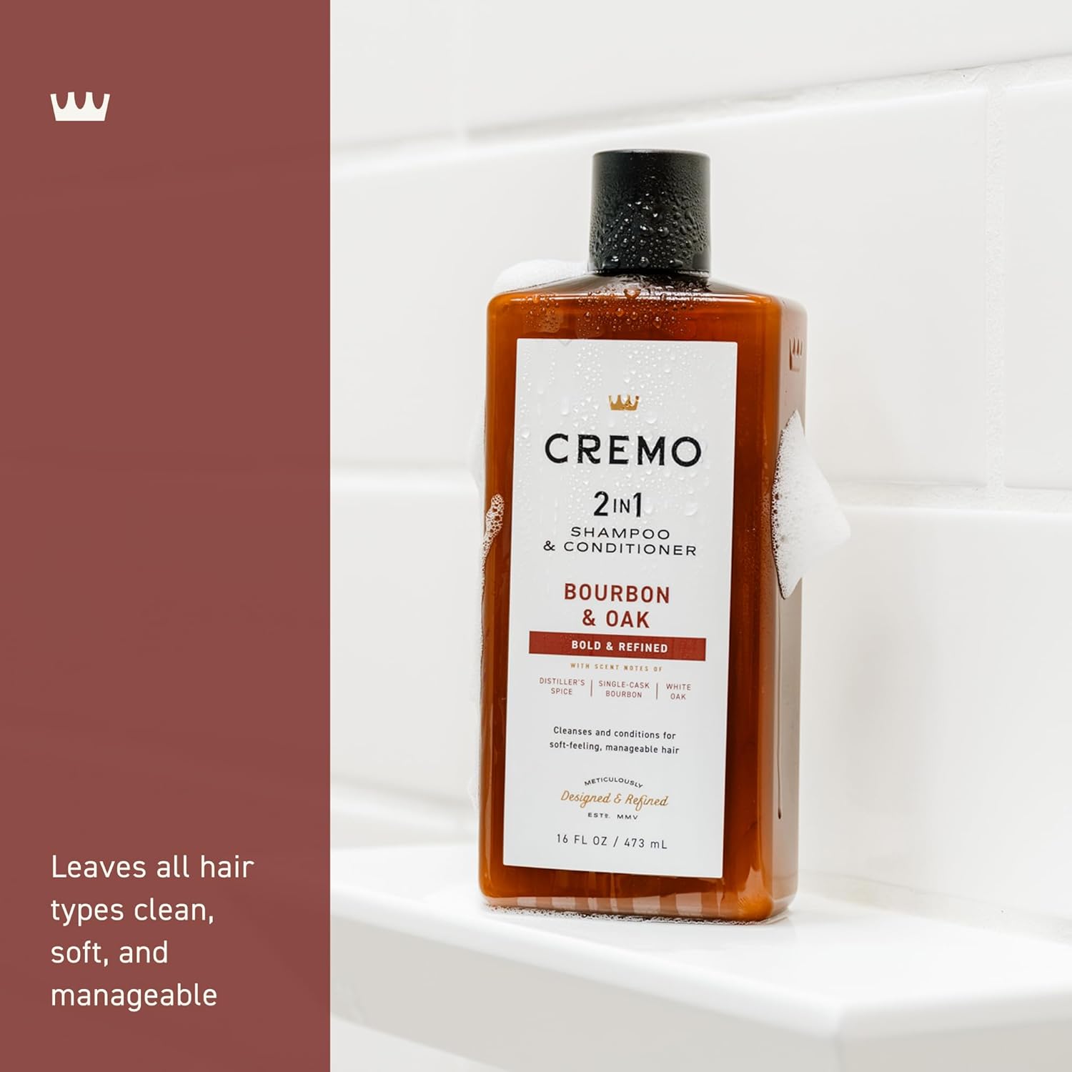 Cleanses, moisturizes and revitalizes for balanced, manageable hair. A rich, smooth, lively scent evocative of a spirited bourbon. Premium Barber grade quality.