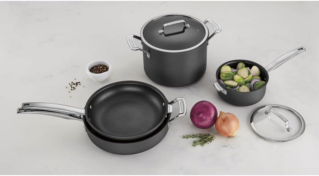 CUISINART N61-11 Nonstick Hard-Anodized Nesting Cookware Set, 11 Piece, Black