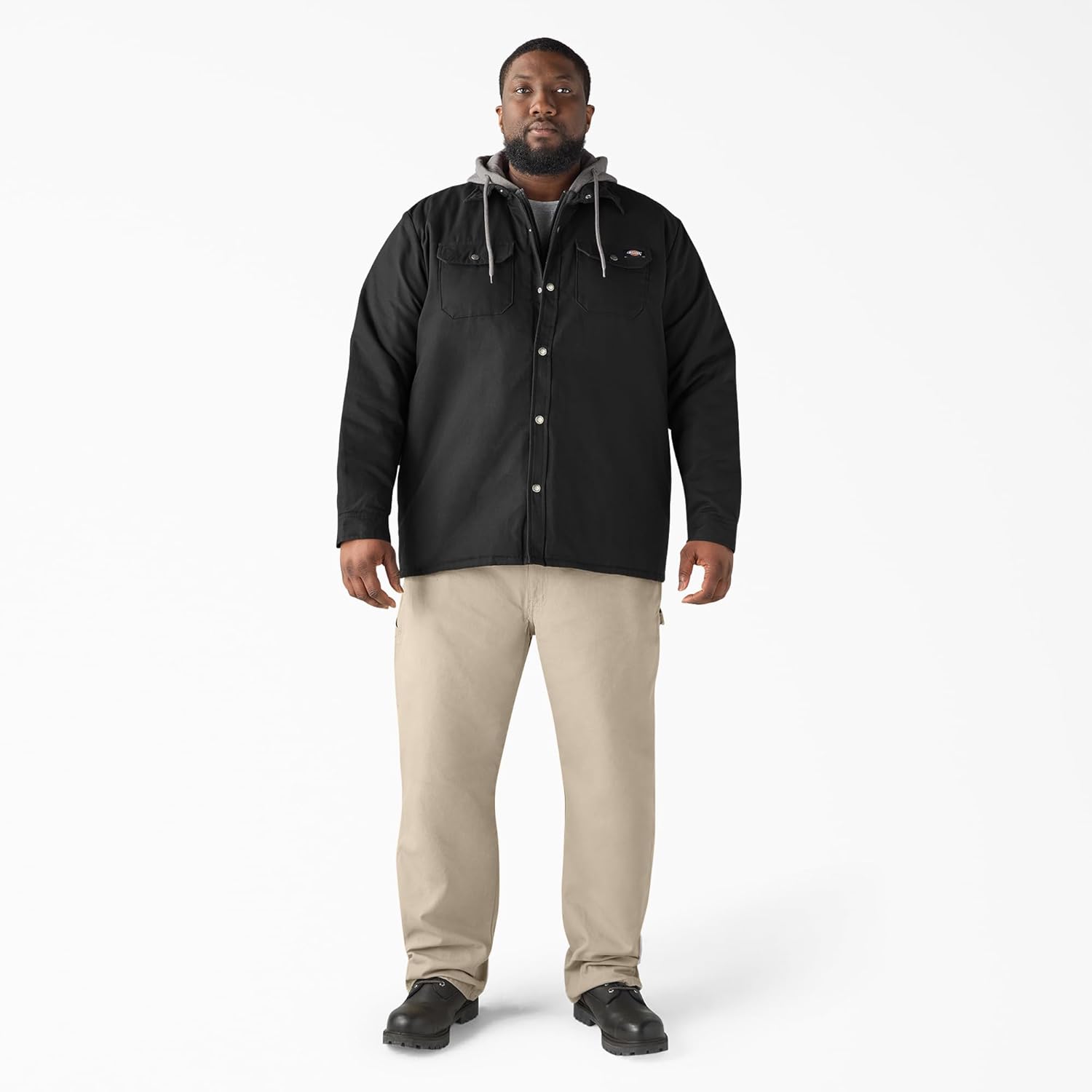 Dickies’ Fleece Hooded Duck Shirt Jacket with Hydroshield is the essential layering piece when it’s too cold for a shirt and too warm for a coat. The Hydroshield innovation makes this jacket completely water repellent, while the jersey lining adds a shield of warmth. The durability of the fabrication adds longevity and value to the jacket, so you know it will go the distance. Plus, Dickies partnership with the Better Cotton Initiative ensures that the cotton used to construct this shirt jacket was sustainably sourced. Hand warming pockets and convenient chest pockets provide high utility in this low maintenance jacket.