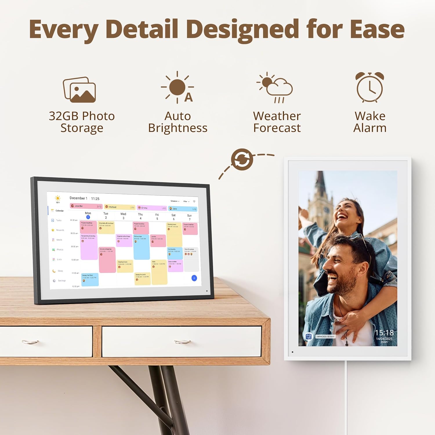 One – cost Family Calendar for Long – term Data – This digital calendar features a reliable internal 32G storage and cloud backup. It securely stores family schedules, chore records, and events. The high – quality build withstands daily use and ensures data integrity for years. It’s a one – time investment, eliminating data – loss worries and repeated purchases
