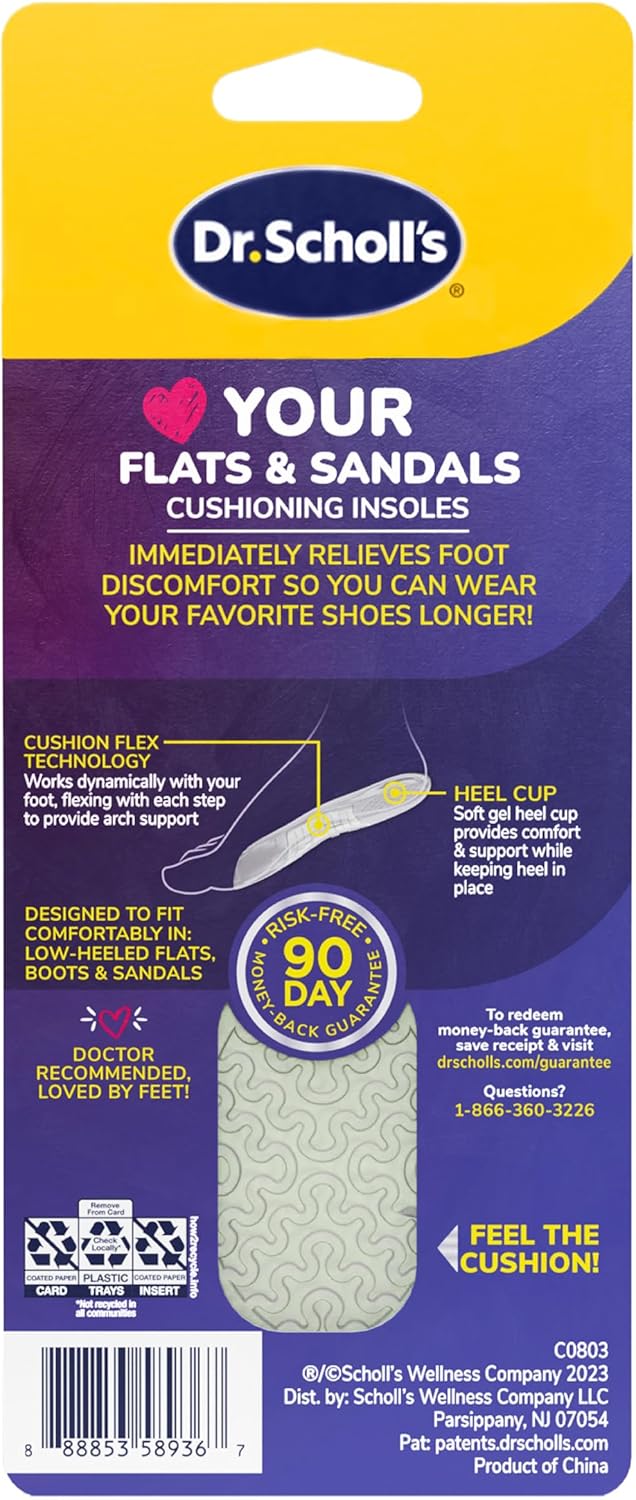 Dr. Scholl’s Love Your Flats & Sandals 3/4 Length Insoles, All-Day Comfort, Relieve & Prevent Shoe Discomfort, Absorbs Shock, Arch Support