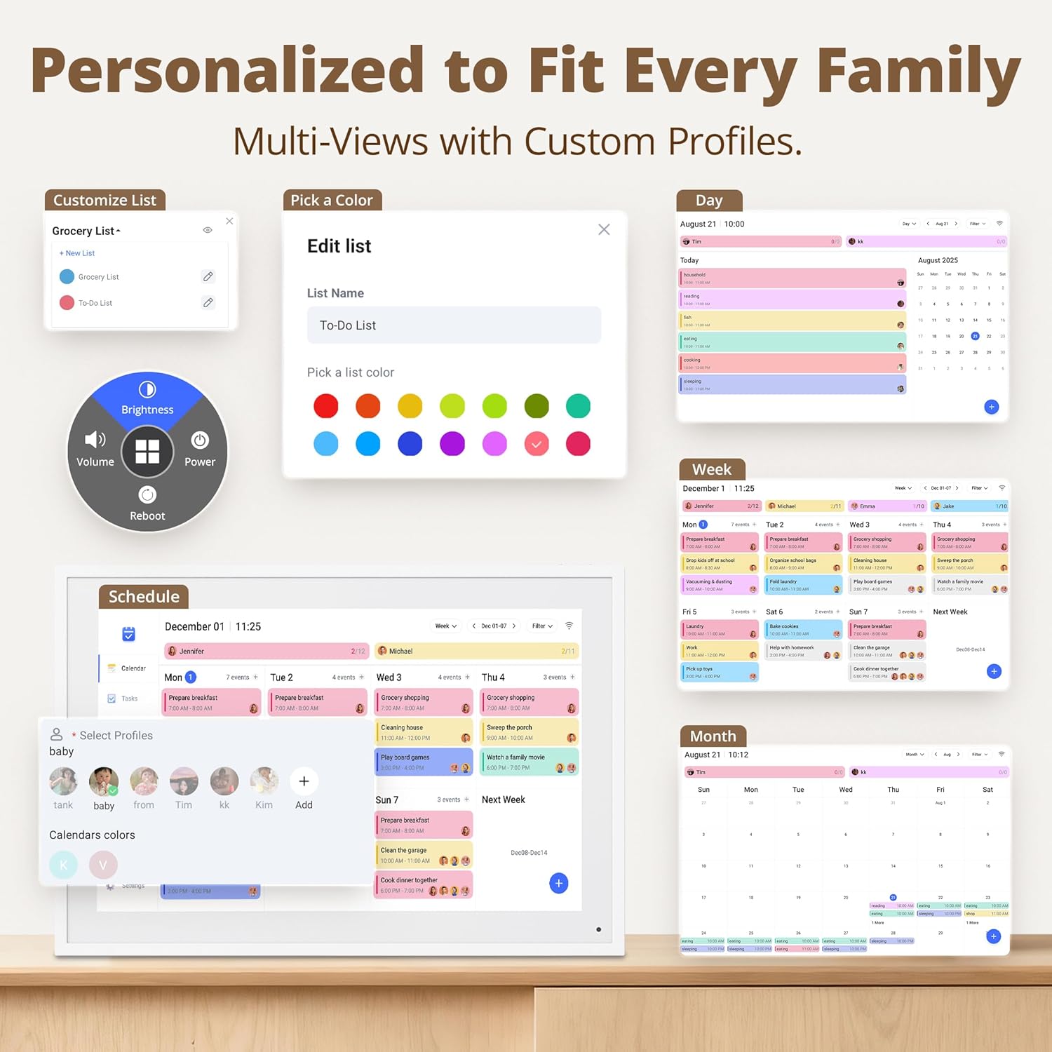 Customers find the digital calendar easy to use, taking less than 5 minutes to set up, and appreciate its functionality, particularly how it syncs seamlessly with Google calendars. Moreover, they praise its quality as a top-notch digital calendar that makes family organization feel effortless. Additionally, the device features a built-in photo slideshow that looks fantastic, and includes useful features like to-do lists, chores charts, and a meal planner.