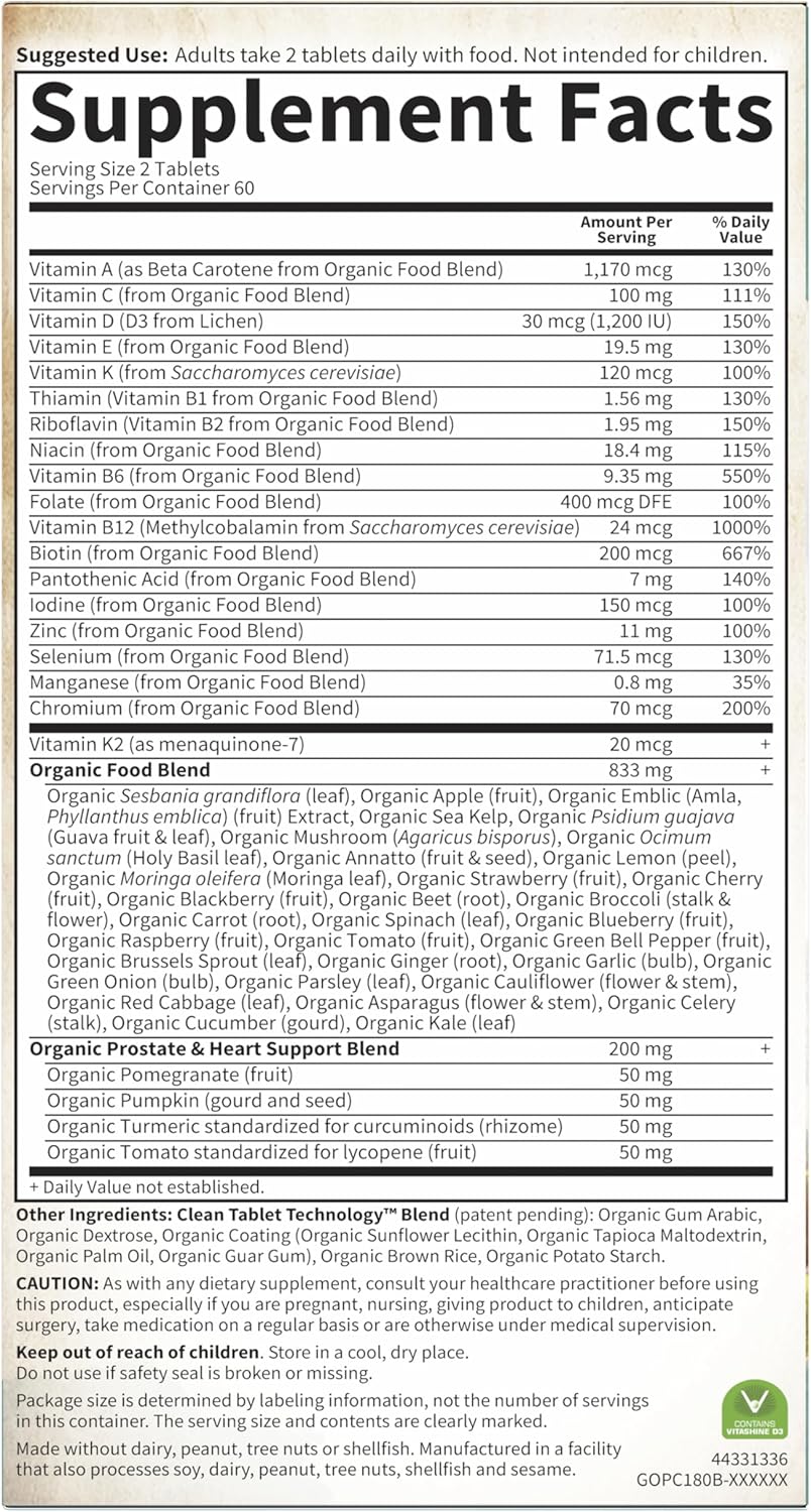 HEALTH, VITALITY & STAMINA MULTIVITAMIN SUPPLEMENT: Our Vegan multivitamin for men over 40 promotes health and well-being, including prostate, vision and heart support―made from over 30 nutritious and Organic fruits, vegetables & herbs