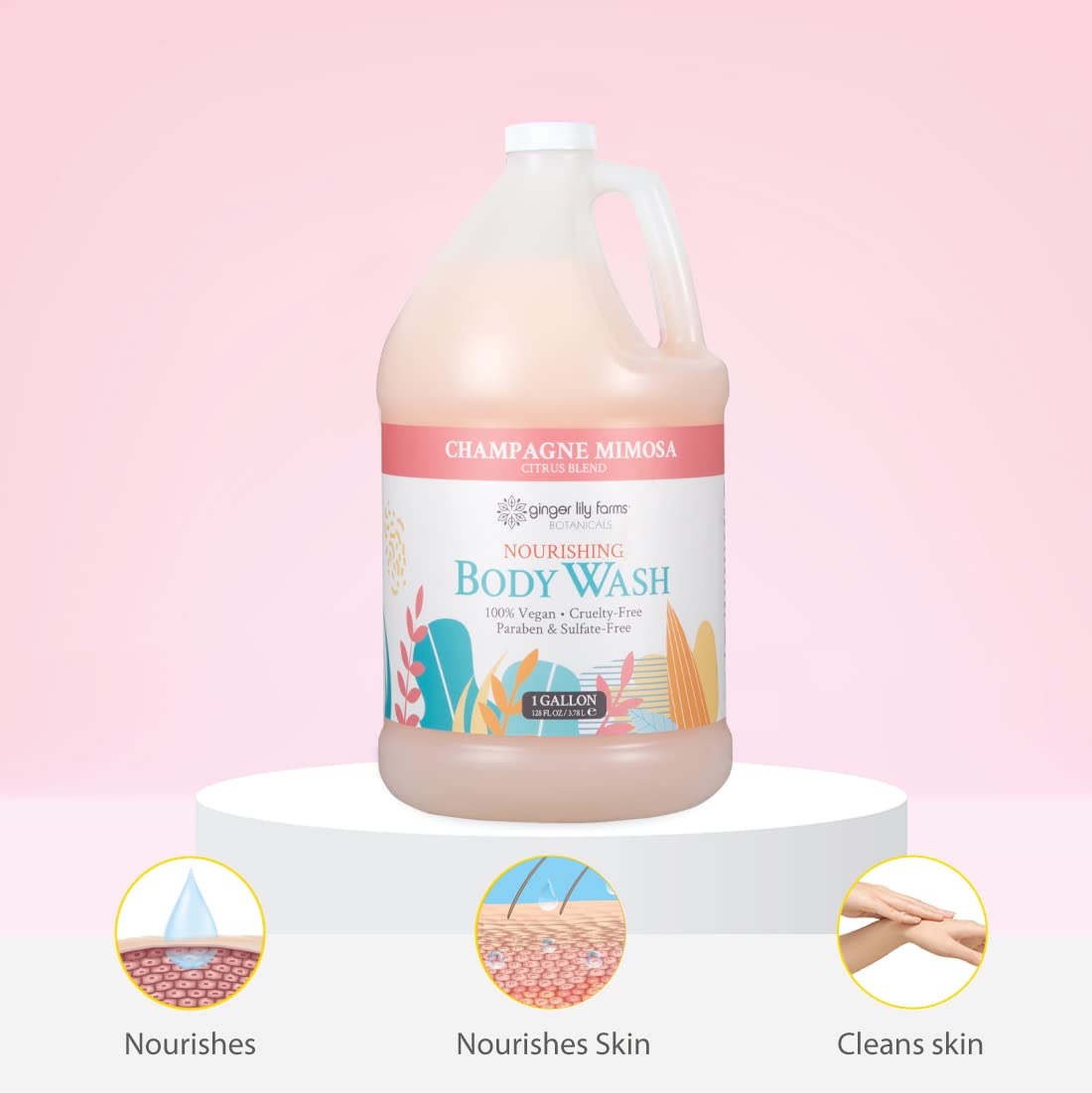 Ginger Lily Farms Botanicals Nourishing Body Wash, Champagne Mimosa, 100% Vegan & Cruelty-Free, Citrus Blend Scent, 1 Gallon (128 fl oz) Refill