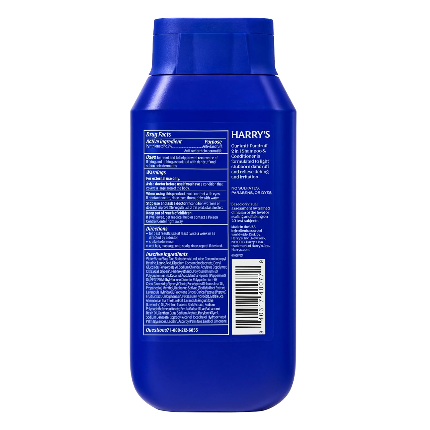 TREAT AND RELIEVE: Harry’s 2 in 1 shampoo and conditioner for men is formulated to tackle severe dandruff, using 2% pyrithione zinc to address the root causes of flakes, itchiness, and irritation