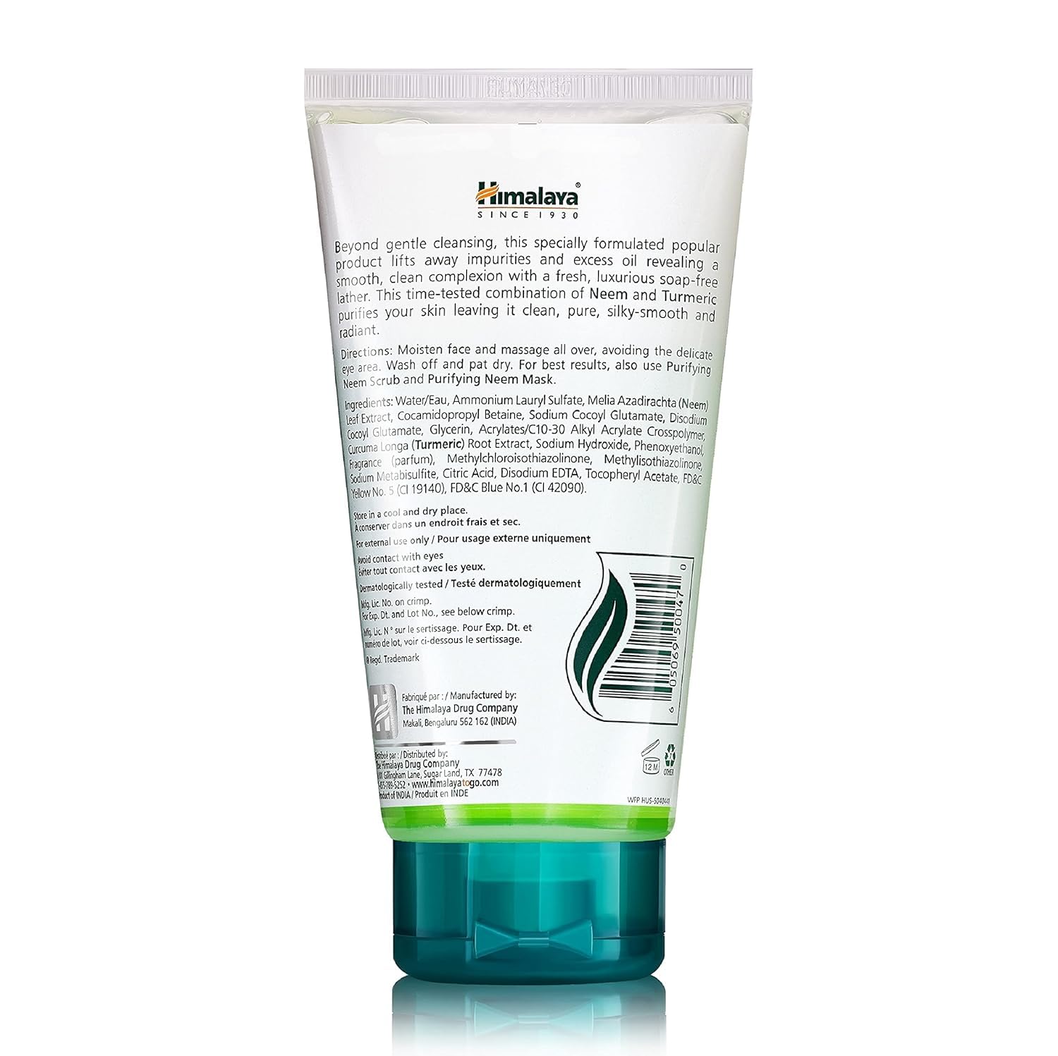 Himalaya Purifying Neem Face Wash, Normal to Oily Skin, Turmeric, Vegan, Cruelty Free, Soap and Paraben Free, Dermatologically Tested, SLS/SLES Free, 5.07 Fl Oz, 150 mL, 1 Pack