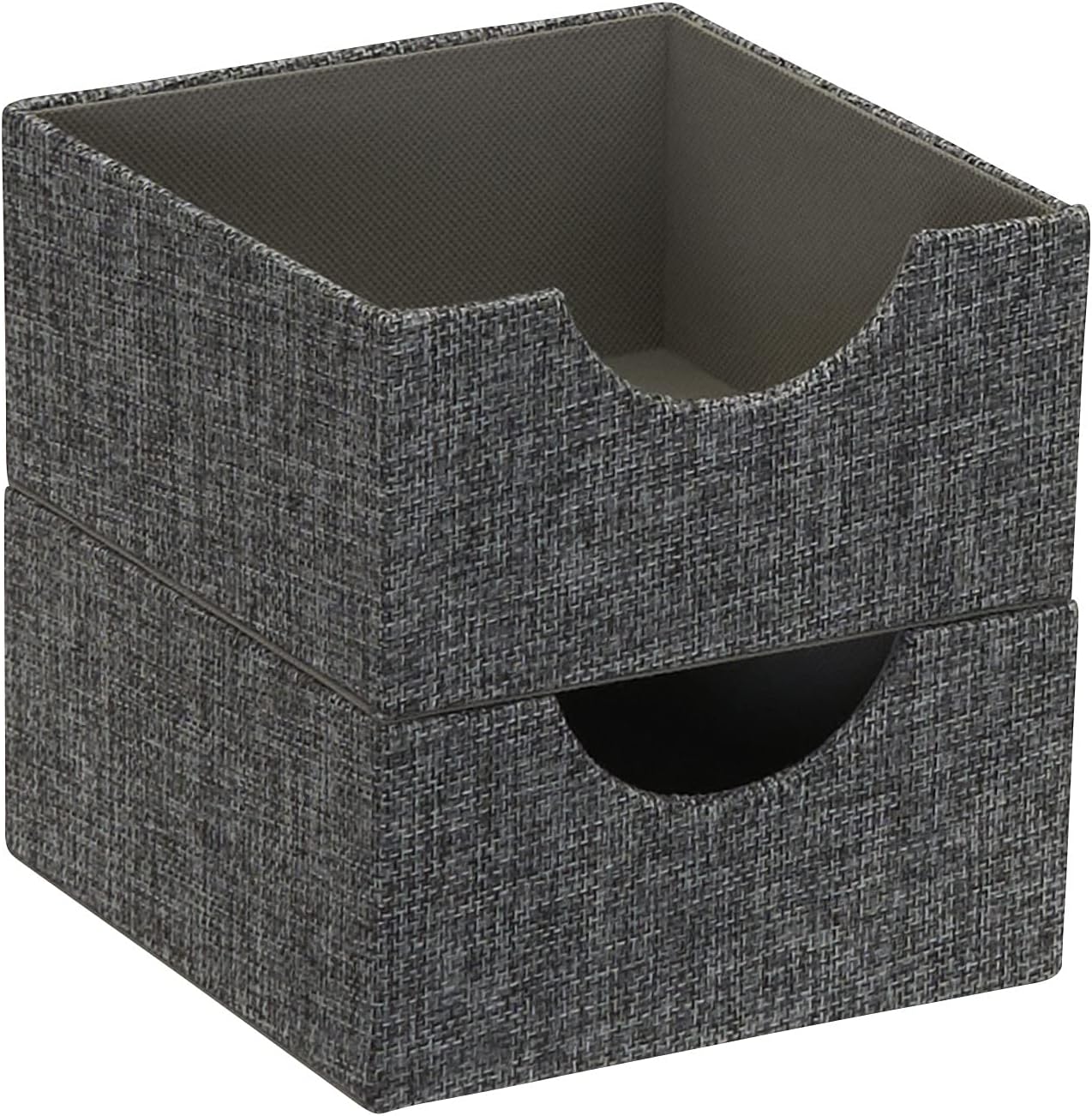 Ditch the used shoeboxes, cigar boxes, and old plastic containers for good with these stylish drawer organizers. Chic and functional, these trendy squared containers allow you to maximize your storage space while keeping your dresser drawers, kitchen drawers, junk drawers, and desk drawers tidy at all times. Available in packs of 2, each organizer measures 6 inches square and stands just 3 inches tall (so you don’t have to worry about pesky hangups when you open and close your drawers). These containers are built from a sturdy chipboard for maximum support and long-lasting structure. They are also wrapped in a soft, eye-catching graphite polyester linen which, apart from looking great, helps to protect your items and your furniture from scuff marks! These containers can be used both as a matching set or individually. Each box features a single notched handle in front for additional convenience and a touch of added style. Perfect for any dresser or drawer, these bins are ideal for organizing and storing socks, underwear, accessories, jewelry, crafting supplies, office supplies, makeup, and other loose items. And the drawer organizers are trendy enough to be on full display as well, so feel free to use them as an attractive storage option for kitchen counters, bathroom vanities, or bookshelves.
