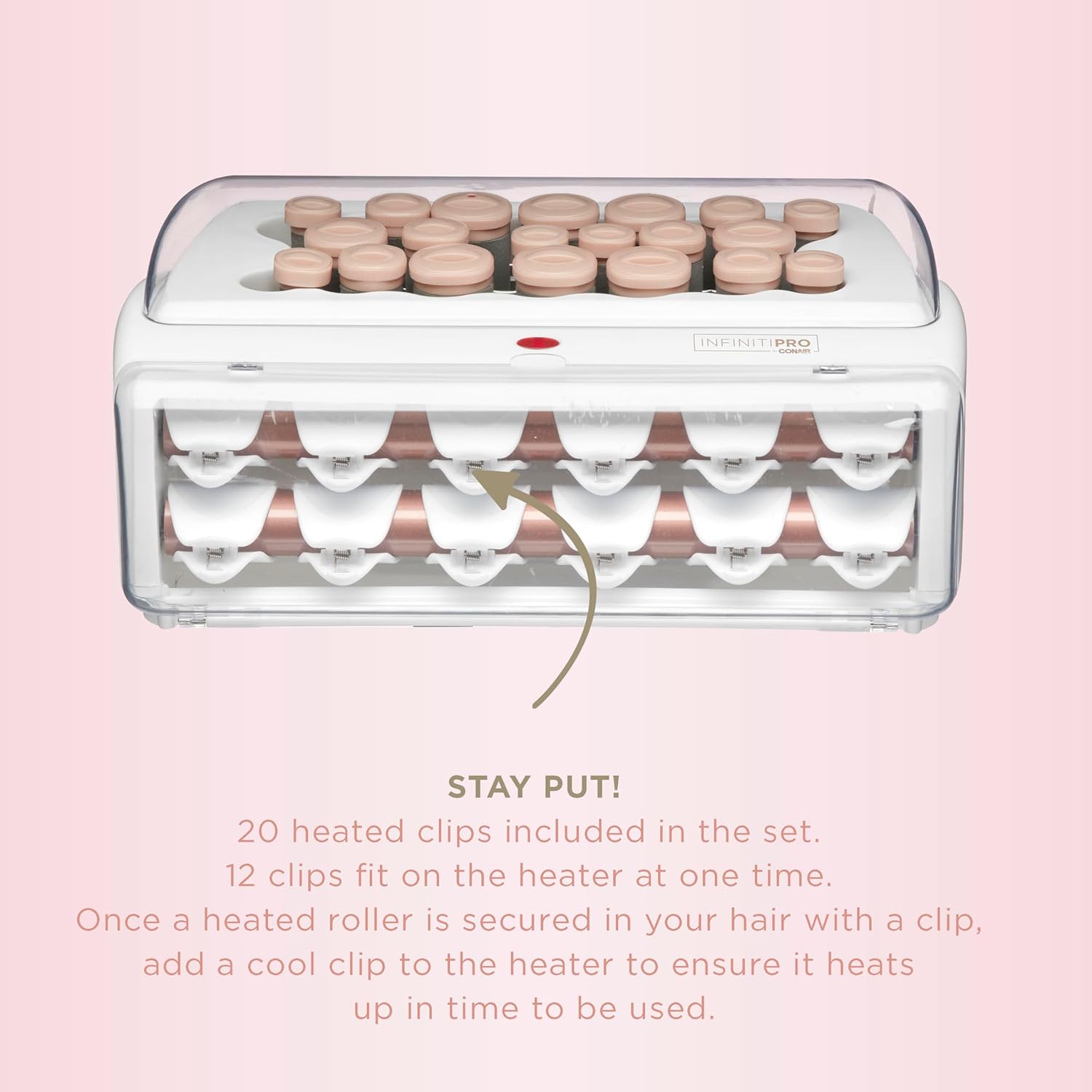 Perfect curls. Gorgeous waves. Get it all, quickly and easily, with Waves & Volume Rollers from InfinitiPRO by Conair. This innovative set of hot rollers comes with 20 rollers—8 extra-large (1¼ inch), 6 large (1 inch), and 6 medium (¾ inch)—that create smooth, healthy-looking results that last. Perfect for forming loose, flowing curls and waves, these rollers are specially designed for maximum comfort and control and come with easy-to-use plastic heated roller clips that hold and set your style. The ceramic-flocked rollers heat up in only 85 seconds with even heat that gives you consistent curls from start to finish. Salon results at home made easy!