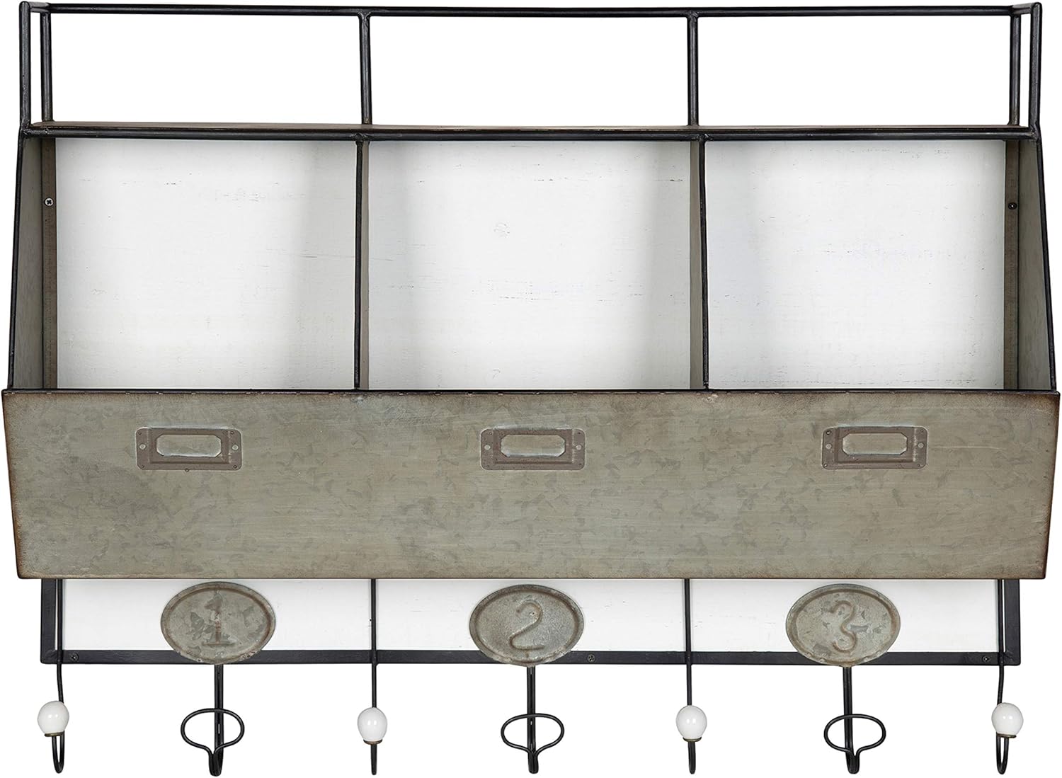 Kate and Laurel Arnica Antique White Wood and Metal Wall Storage Pockets with Hooks