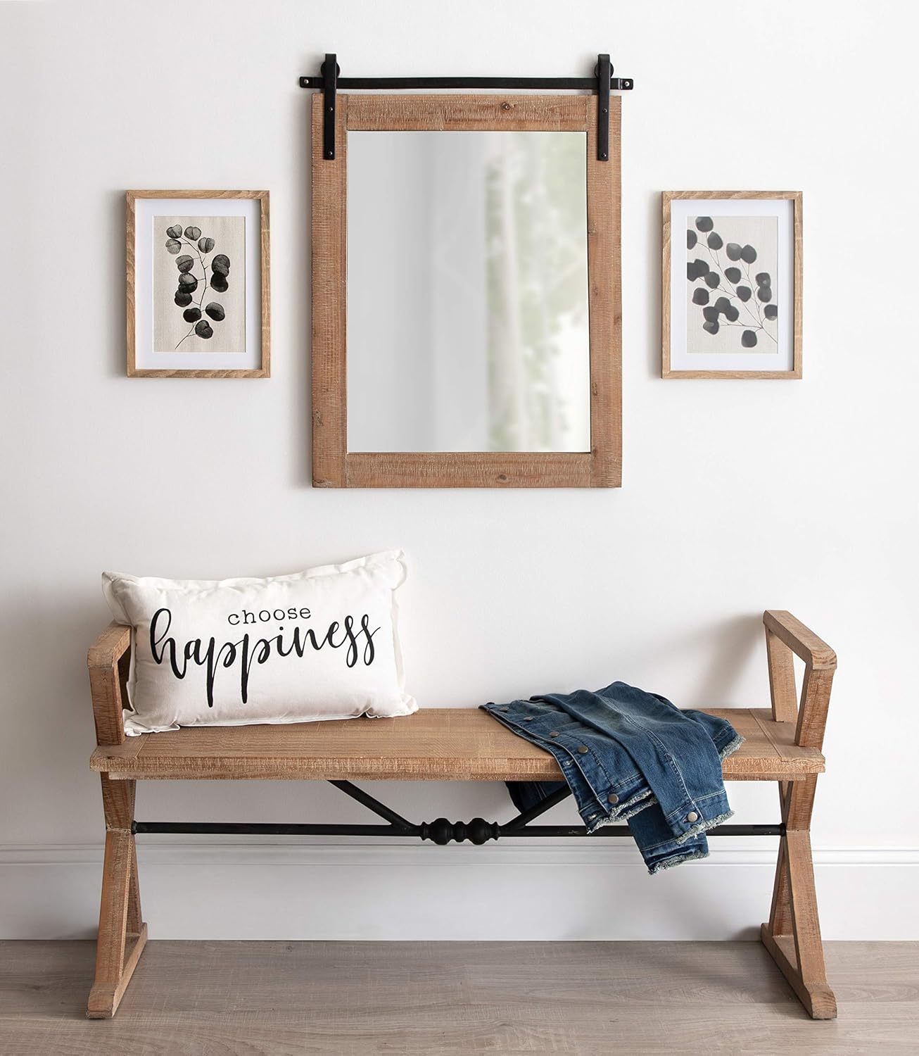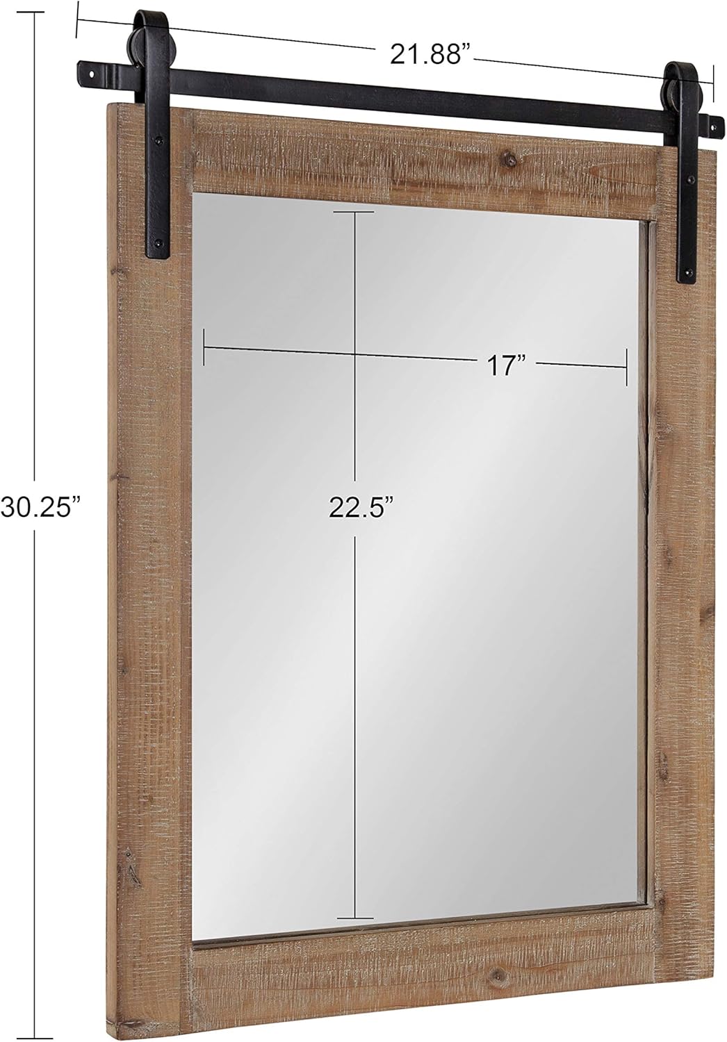 This wall-mounted, rustic mirror is the newest addition to our popular Cates collection. Inspired by traditional farmhouse decor, this wall mirror has a barn door-like appearance with a rustic, wood frame and raw iron metal brackets securing it to your wall. The Cates mirror is an excellent feature in any room thanks to its transitional style and convenient screw-in installation technique. It’s easy to use as a living room or entryway accent, or as a bathroom mirror and vanity. The distressed look of the frame adds to its farmhouse style charm and would look great in a kitchen, hallway, or dining room, too. Adding a mirror to any living space in your home opens it up and adds dimension by reflecting light sources across the room. This mirror comes fully assembled with no assembly required, mounting in seconds with all necessary hardware already included. Want to create a dynamic decor theme throughout your home? Shop all of our Cates collection to get inspired by our console tables, shelf organizers and more!