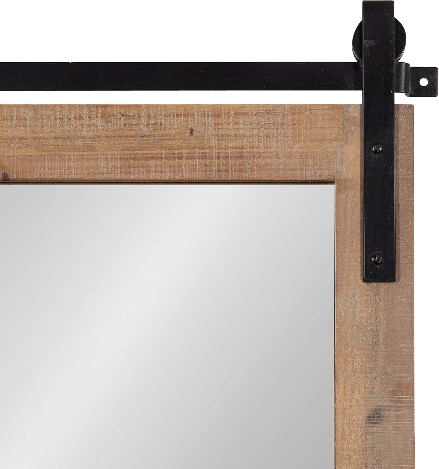 EASY TO HANG: The Cates wall mirror has pre-drilled holes on barn door inspired metal bar for easy installation in seconds