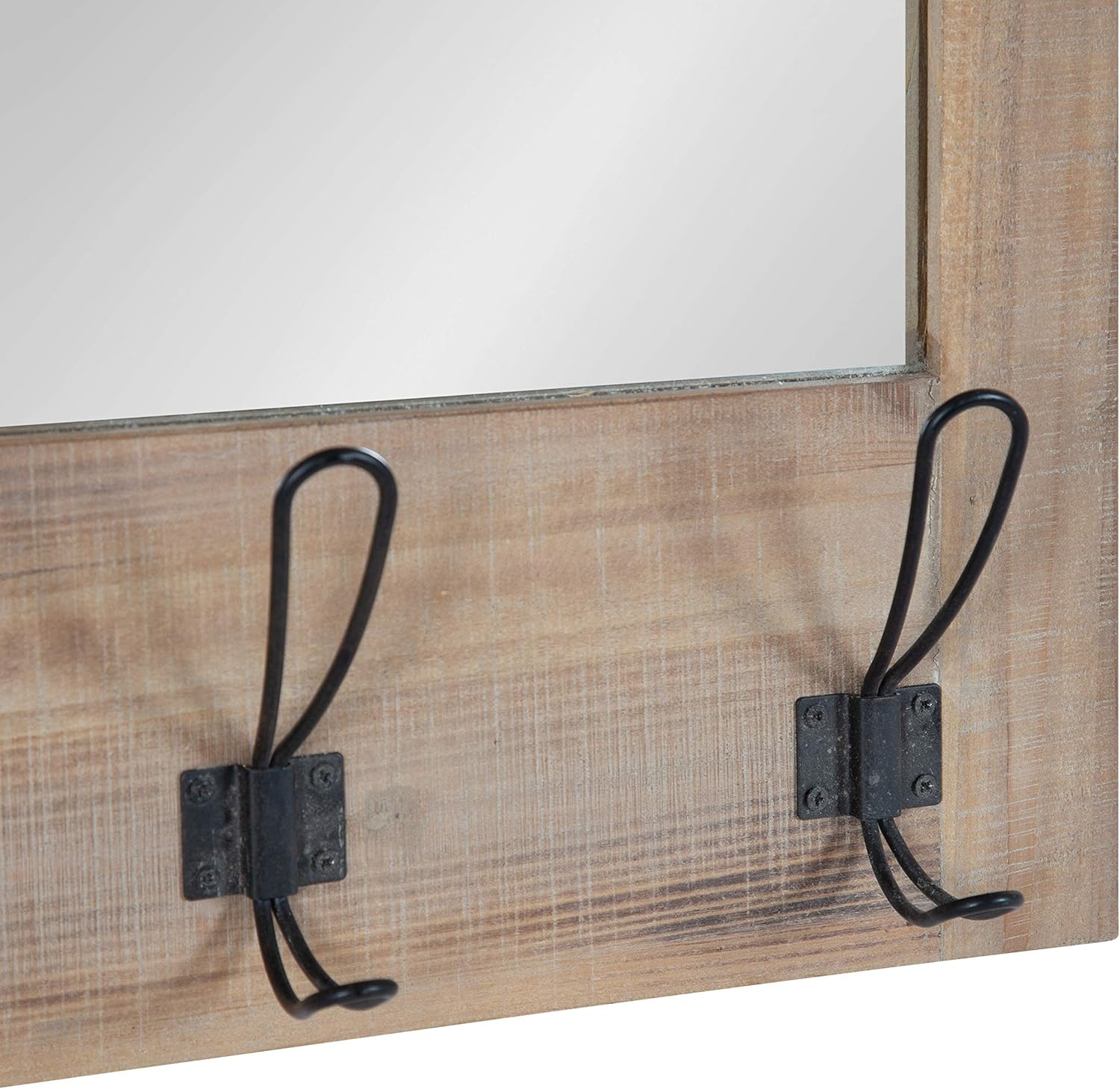 Take advantage of rustic charm and farmhouse functionality with the beautiful Cates wall mirror. Our Cates collection features a barn door-inspired design, hanging from a vintage iron bar. The frame of the mirror is also made from robust wooden material, elevating its style and resiliency. The frame also has a distressed finish for an antique look that looks lovely in any farmhouse-style home. This edition of the Cates wall mirror comes with a bonus of function: on the bottom of the frame, you’ll find three double-sided metal hooks. These metal hooks are fantastic for hanging keys, small backpacks, coats, and more, making the perfect mirror to hang near your entryway. It’s also a fantastic accent for your bedroom, closet, or even your living room. The Cates wall mirror’s overall dimensions with hooks are 18 inches wide by 2 inches deep by 28 inches tall, making it a focal point your guests won’t be able to ignore. Hang this Cates wall mirror in a matter of seconds thanks to the pre-drilled holes in the iron bar bracket.