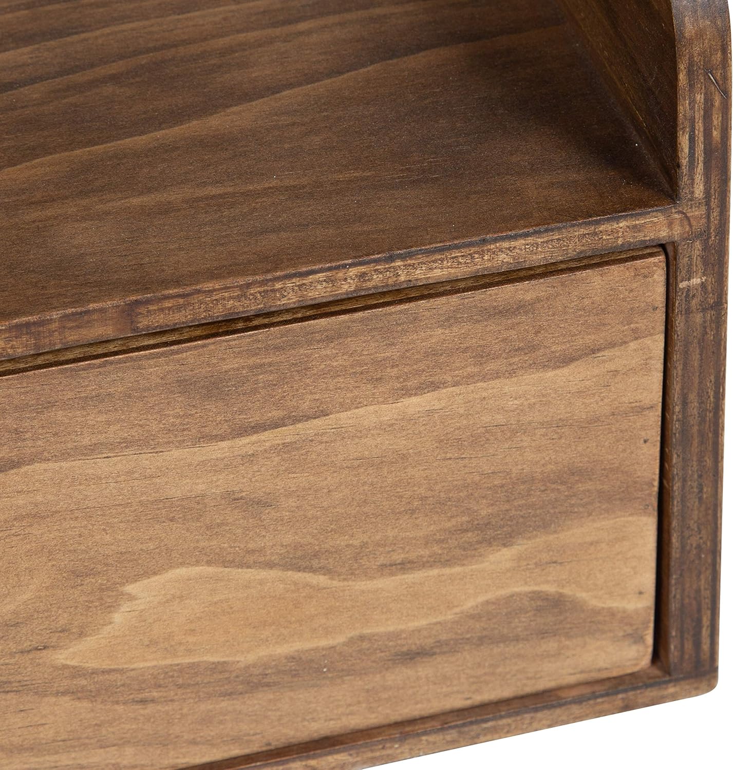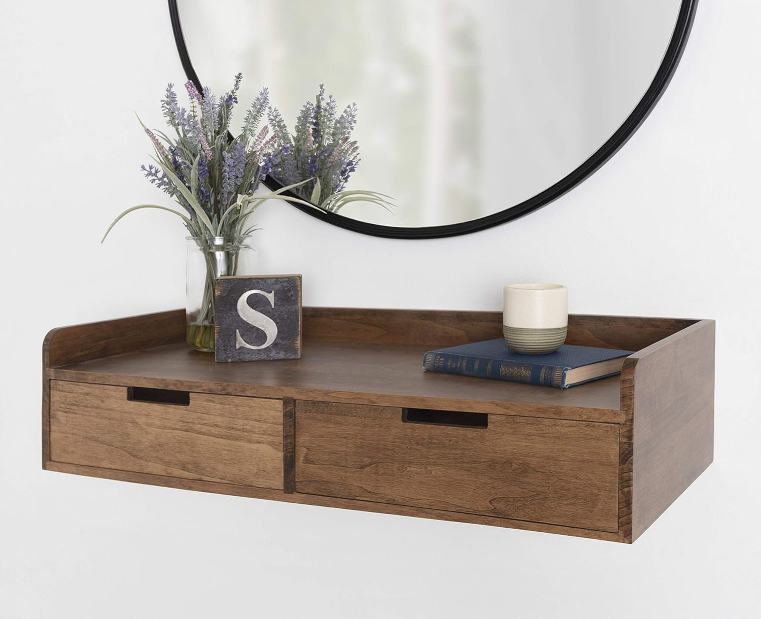 TWO DRAWERS: The Kitt floating shelf has two sliding drawers built in, and each drawer is 13 inches wide by 11.5 inches deep by 3.75 inches tall, making them excellent storage drawers for office supplies, craft supplies, and other household items