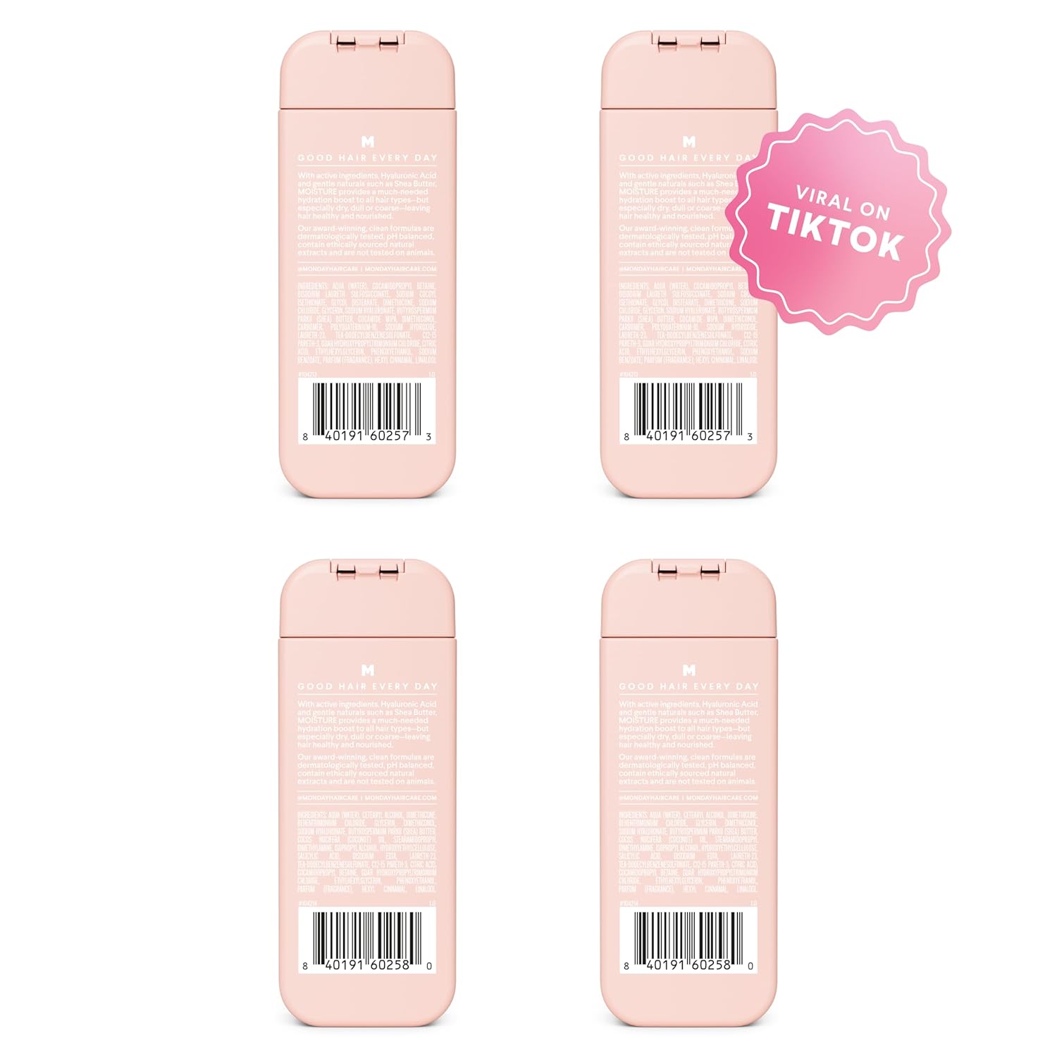 MONDAY Haircare’s award-winning MOISTURE Shampoo + Conditioner contains active ingredients, Hyaluronic Acid and gentle naturals such as Shea Butter to provide a hydration boost to dry and dull hair—leaving it feeling nourished and revived. Hyaluronic Acid has moisture-binding properties to provide hydration, while Shea Butter helps to seal the cuticle and soften hair. The formula is also pH balanced, dermatologically tested, paraben free and sulfate free. What’s more, MONDAY Haircare is approved as cruelty free under the Leaping Bunny programme and is PETA certified as a brand that does not test on animals. With MONDAY, every day can be a good hair day!