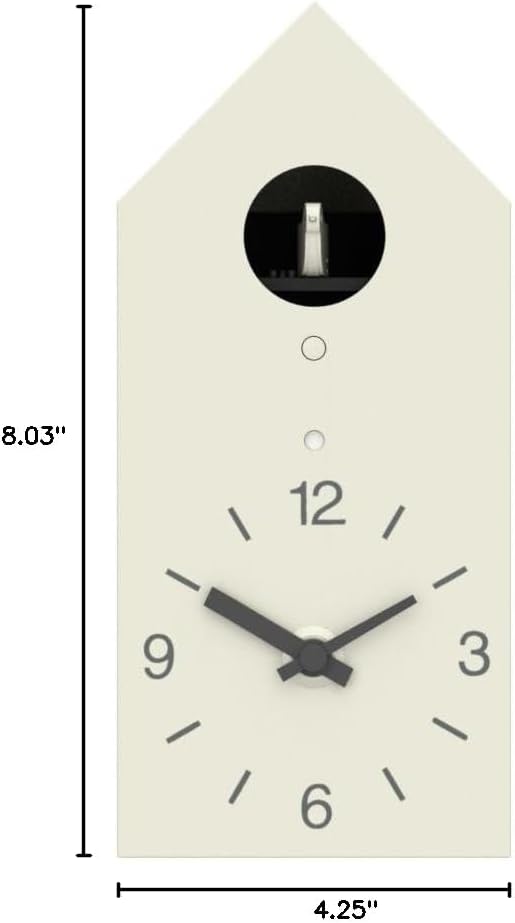 Muji Cuckoo White Clock is made using meticulously hand-crafted bellows, this cuckoo clock tweets with a natural tone that differs from digital sound. Attached with light sensor which turns off the sound in dark environment. Beautiful match with your unique home decors. Can stand alone or be mounted on a wall. Includes 1X AA battery. Chime functions: On the hour or every half hour. W9.5 x D10.8 x H20.4 cm.