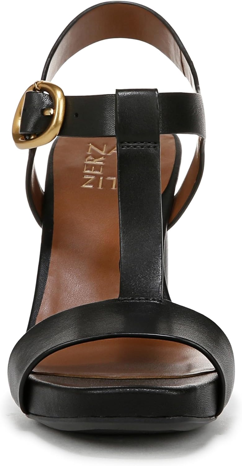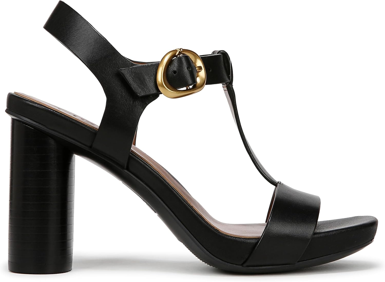 Sandals for every soirée. You’ll love the thoughtful touches of this silhouette: a metallic buckle, T-strap styling and cylindrical heel. Strappy sandal with statement buckle. Leather upper responsibly sourced from Leather Working Group certified tanneries, partially bio-based linings and an open toe. Adjustable buckle closure. Contour+ Comfort technology for a premium fit and all-day comfort experience. 3/4 inch platform, 3 1/2 inch heel. Consciously packaged: 100% of our shoe boxes are made of 80% recycled paper + soy-based ink. Insole crafted from partially recycled materials. WHY YOU’LL LOVE IT: Forever elegant silhouettes with all day wearability, available in an inclusive range of sizes and widths. Designed to the contours of a woman’s foot. The Beautiful Fit. Since 1927.