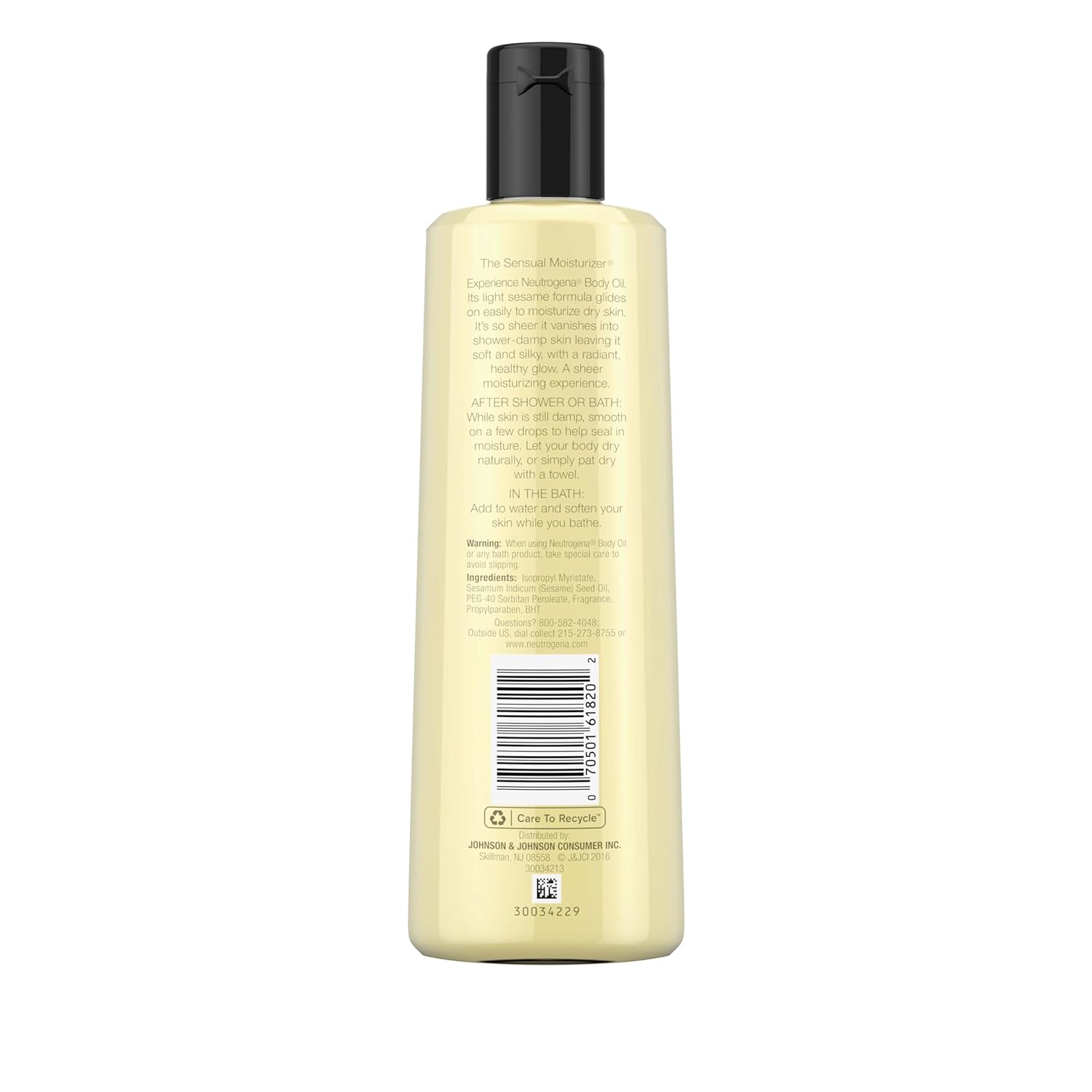 Neutrogena Body Oil light sesame formula glides on easily for a moisturizing experience, leaving skin feeling soft and silky. This lightweight body and massage oil helps soothe dryness and pampers skin. This moisturizer for dry skin instantly vanishes and absorbs quickly while locking in moisture providing essential hydration without leaving a greasy feel. The light sesame formula, enriched with sesame oil, leaves your skin with a radiant, healthy-looking glow. This skin oil, perfect body oils for women & men, provides hydration and nourishment, helping to provide essential hydration without the heavy feeling of a body lotion. Use as a shower oil and apply body oil after shower or bath by smoothing on a few drops and massaging it into your skin while still damp. You can also add it to your bath water as a bath oil for dry skin to help soften and nourish your skin, making it an excellent choice for dry skin care.