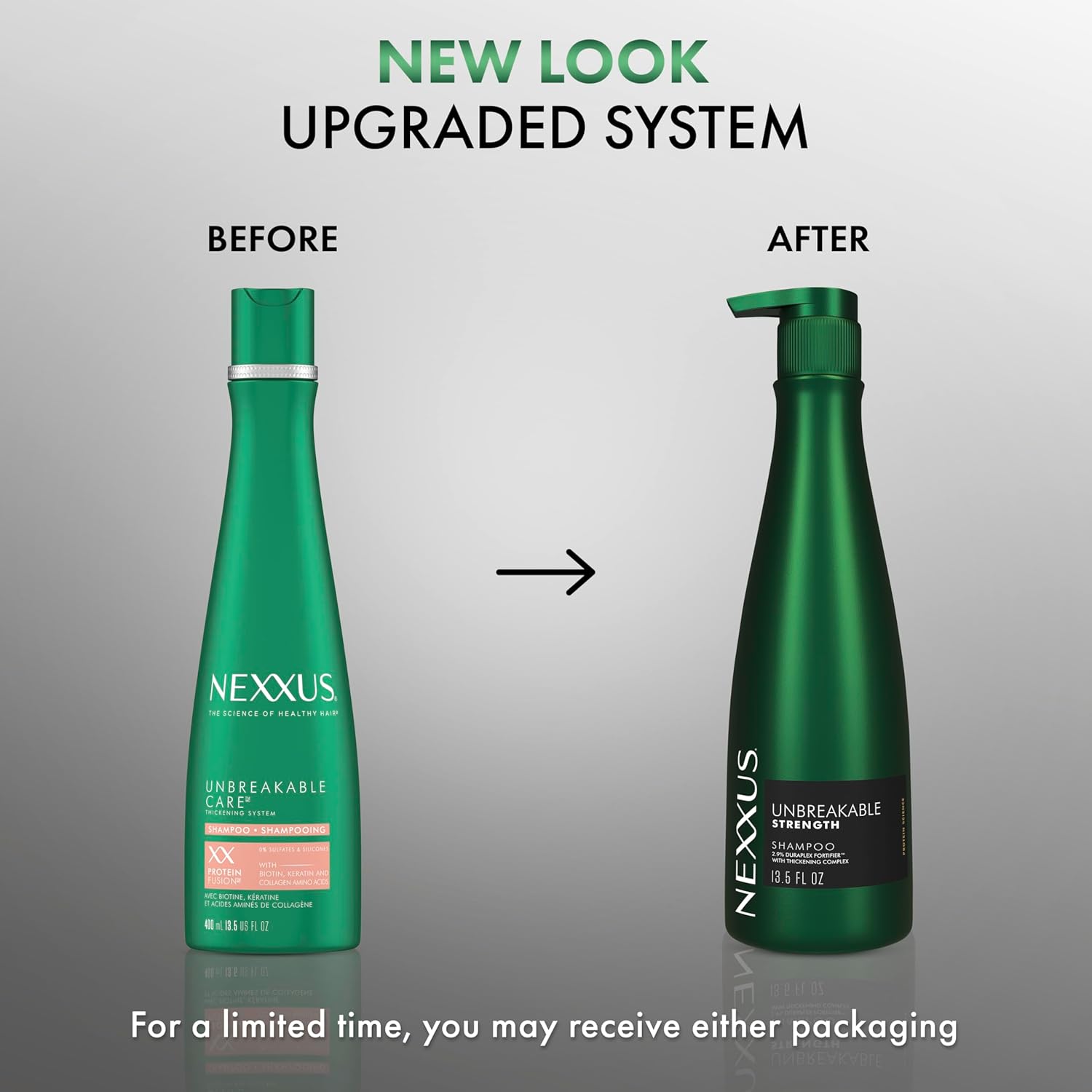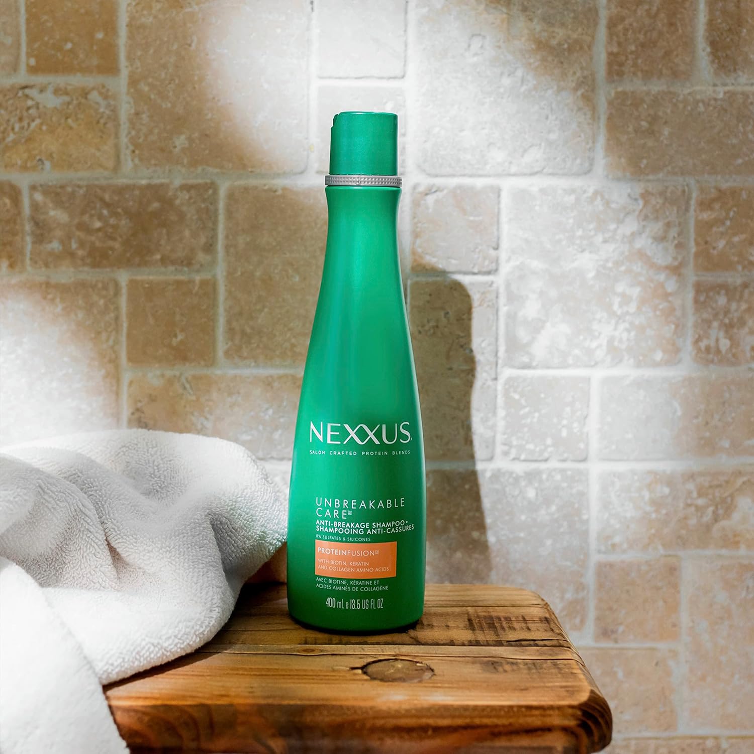 Our Nexxus Unbreakable Care scientifically proven system will create weightless volume and strengthen each hair strand from within, while a fortifying barrier reduces up to 97% of hair fall due to breakage* for less hair on your brush and fuller, thicker-looking hair. *vs. non-conditioning shampoo This sulfate-free shampoo is infused with a ProteinFusion blend with Biotin, Keratin, and Collagen Amino Acids to strengthen and protect hair from within. This shampoo and conditioner system is powered by our micro-thickening technology that creates weightless, thickening bonds between strands, adding shape for maximum fullness. Nexxus delivers salon quality results with Unbreakable Care, strengthening hair and adding weightless volume for stronger, fuller, thicker-looking hair with every wash. How to Use: Start by massaging Nexxus Unbreakable Care Anti-Breakage Shampoo into the scalp, lather and rinse. Then follow with Nexxus Unbreakable Care Thickening Conditioner for best results. Spread through wet hair and rinse. Born in salons and perfected by science, each Nexxus system is crafted with protein blends from nature’s most precious ingredients and infused with high performing technologies to bring your hair back to life. Our Nexxus collections were formulated by our team of experts using protein science to identify the precise solutions your hair needs. Discover your collection today.