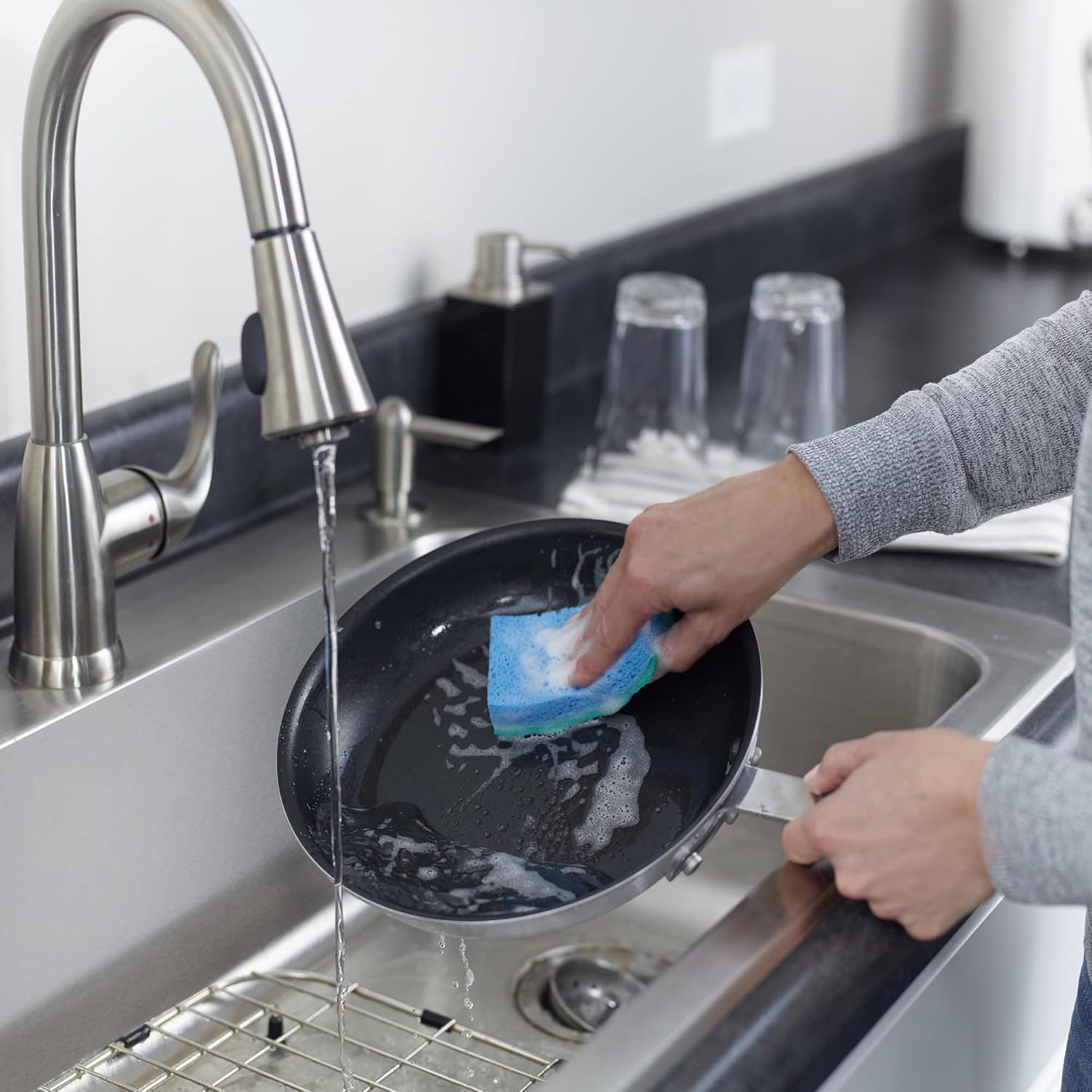 NON-SCRATCH: The amazing O-Cedar Scrunge kitchen sponge has a unique non-scratch double-sided scrubbing surface perfect for your nonstick pans & cookware! Try it and see for yourself!