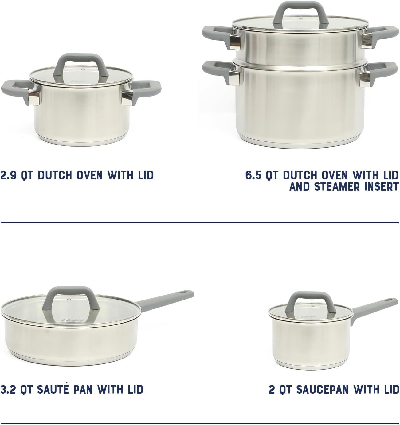 BRUSHED STAINLESS STEEL COOKWARE: Brushed exterior resists stains and scratches from everyday cooking and constant washing. Ideal for quick boiling, slow simmering and high-heat searing, each pot performs exceptionally as it is best at even heating and cooking.