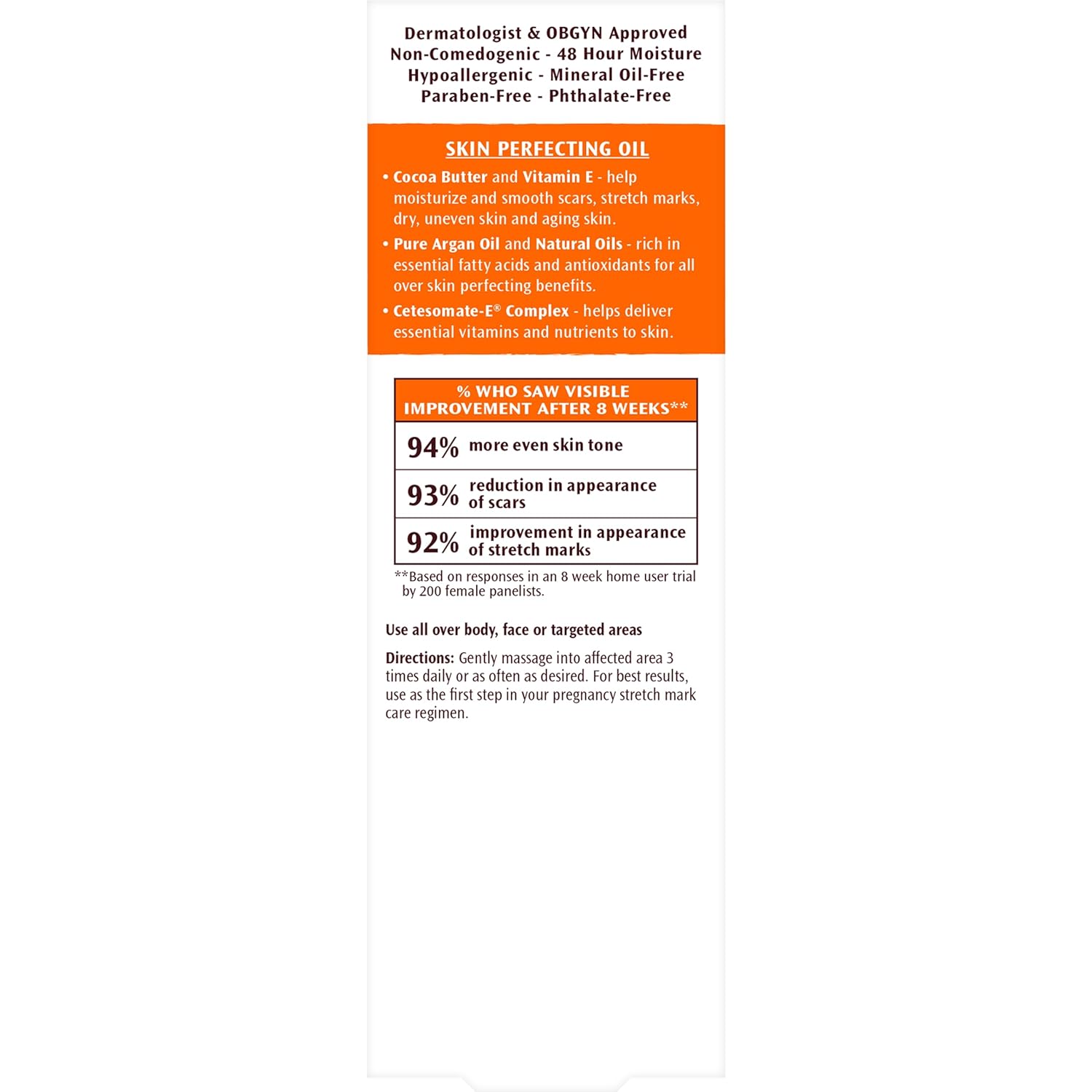 Special Formula: Made with Cocoa Butter to moisturize, Argan Oil to soften and condition, plus a blend of ingredients to hydrate and improve skin imperfections while promoting healthy skin cell rejuvenation
