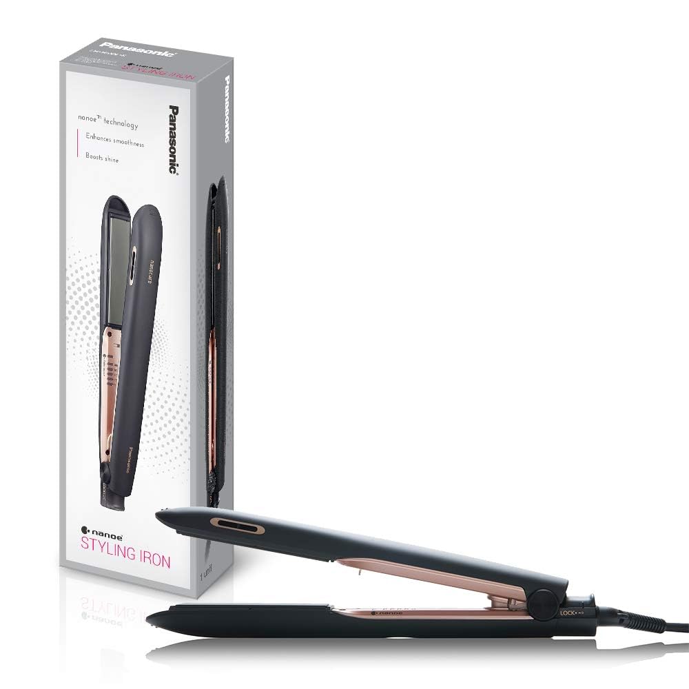 Panasonic nanoe Flat Iron for Healthy, Shiny Hair, Hair Styling Iron with Ceramic Plates and Intuitive Heat Technology, for Straightening, Smoothing and Curling – EH-HS99-K (Black/Rose Gold)