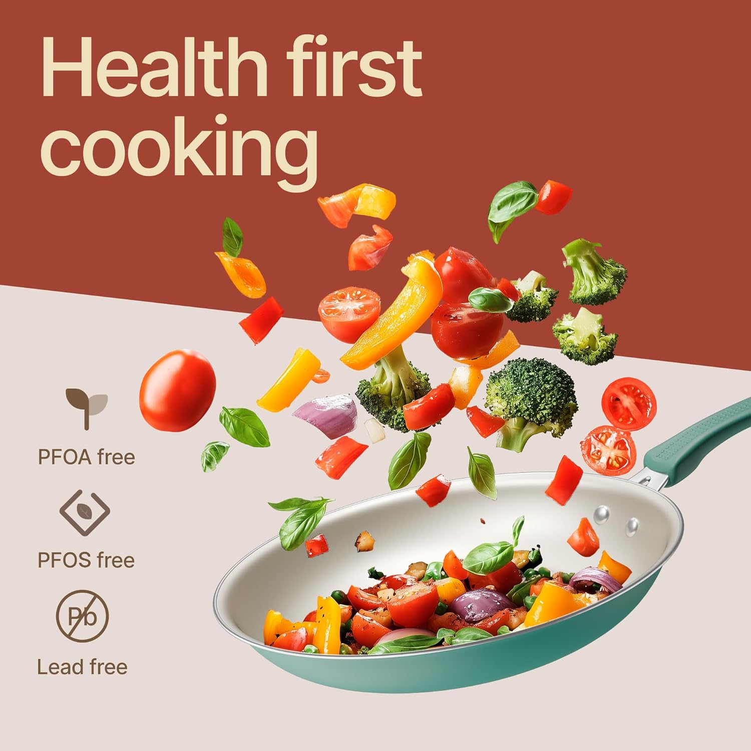 NONSTICK COOKWARE SET – Crafted with PFOS and PFOA-free materials with non stick coating that’s safer for health and 10x more nonstick, ensuring easy food release and cleanup. Though dishwasher safe, handwashing is recommended to maintain its premium quality.