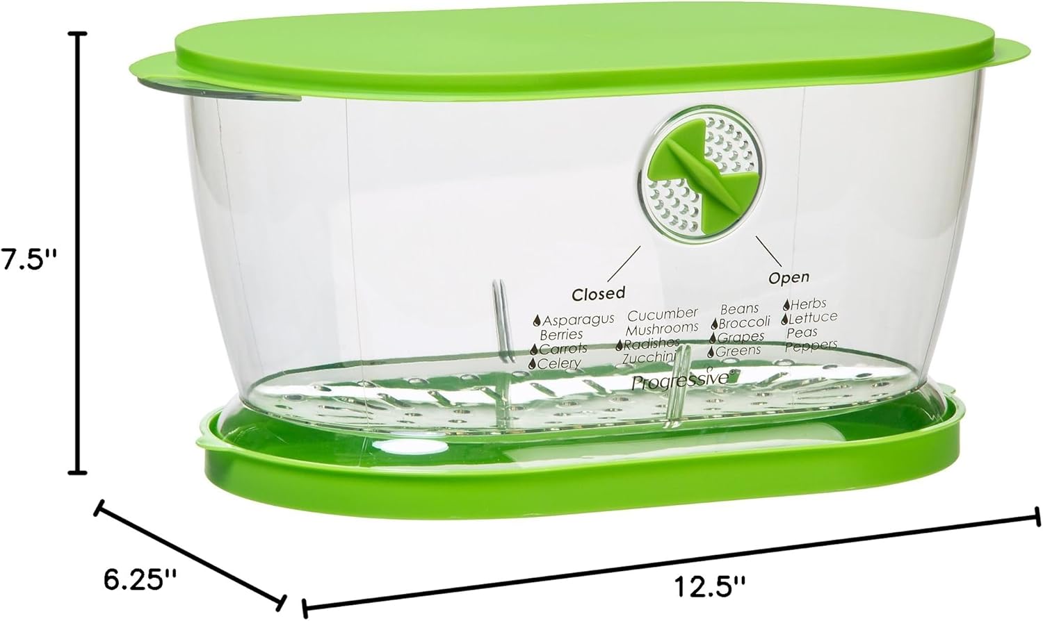 LKS-06 features: -moisture settings for 16 produce items included. -Divider included to store 2 different items together. -Extend the life of your produce with proper storage. -Adjustable vent controls air circulation. Product type: -Bulk. Color: -Clear, Green. Set size: -1. Dishwasher safe: -yes. Primary Material: -plastic. Capacity: -150 ounces. Food safe: -yes. Dimensions: Overall height – top to bottom: -6″. Overall width – side to side: -12. 1″. Overall Depth – front to back: -7. 3″. Overall Product weight: -2. 6 lbs.