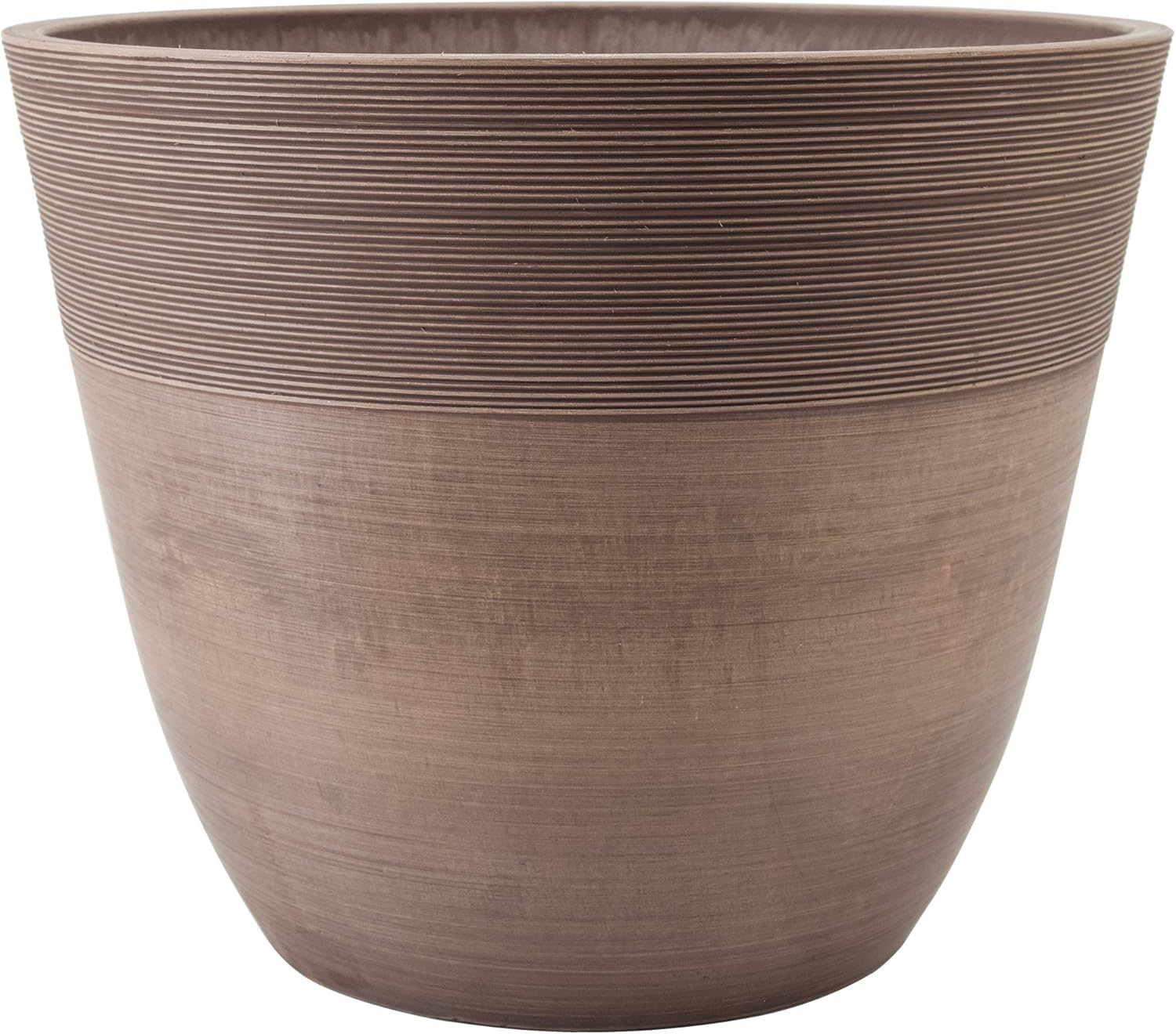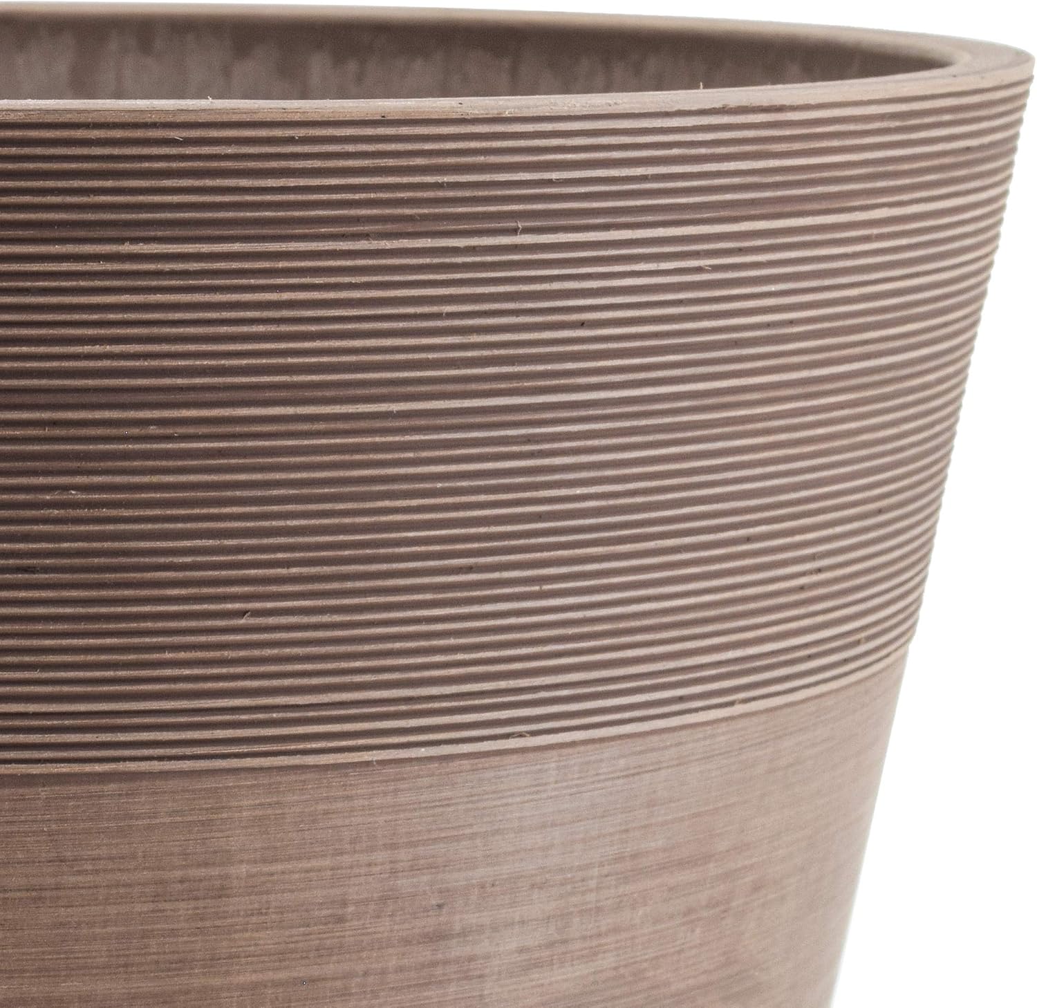 Part of our award-winning PSW Pot Collection, the Etched Pot from Arcadia Garden Products is made from a mix of recycled plastic, stone powder, and wood dust. This smart-looking container is ideal for planting combination gardens that provide adequate space for descending roots. The height works well for those plants that will drape and grow over the pot’s edge. Both indoor and outdoor use are popular with this deep pot. For outside use where drainage is likely to be necessary, the bottom of the pot indicates the ideal area for optional drilling. The winning combination of recycled ingredients in the PSW line makes this an attractive, eco-friendly product that is also weather resistant and easy to clean. Available in two colors and three sizes, the container features elegant etched ridges around the top portion of the pot. The sturdiness of this etched pot is admirable, and its significant feel and look make it a thoughtful gift for those who enjoy plants and planting. Because it coordinates with other PSW co