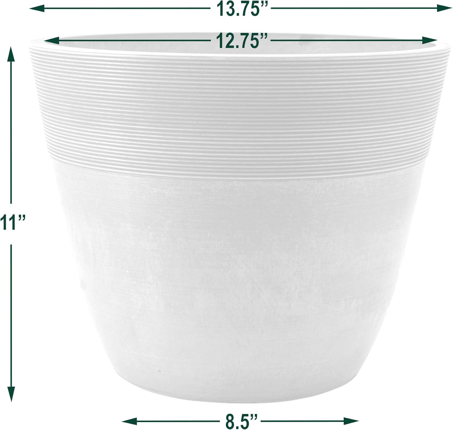 [FM35] Size: The 14-inch planter measures 13.8” round and 11” tall, with an opening diameter of 12.8”.