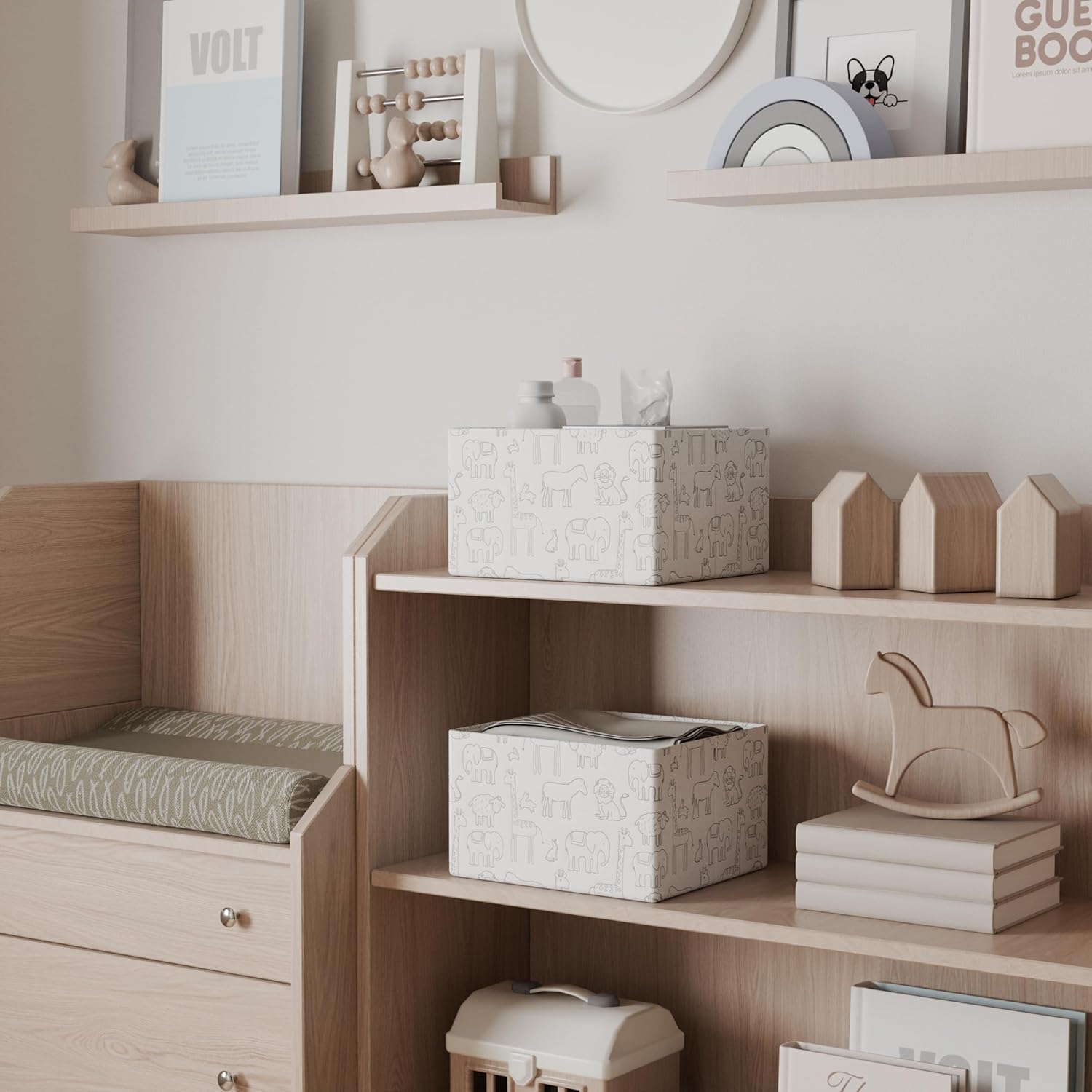 Decorative and Functional Design: Featuring charming outlines of exotic and familiar animals from forests, jungles, and fields, these baskets add a whimsical touch while offering practical storage. The interior includes a white protective inner liner to keep contents safe.