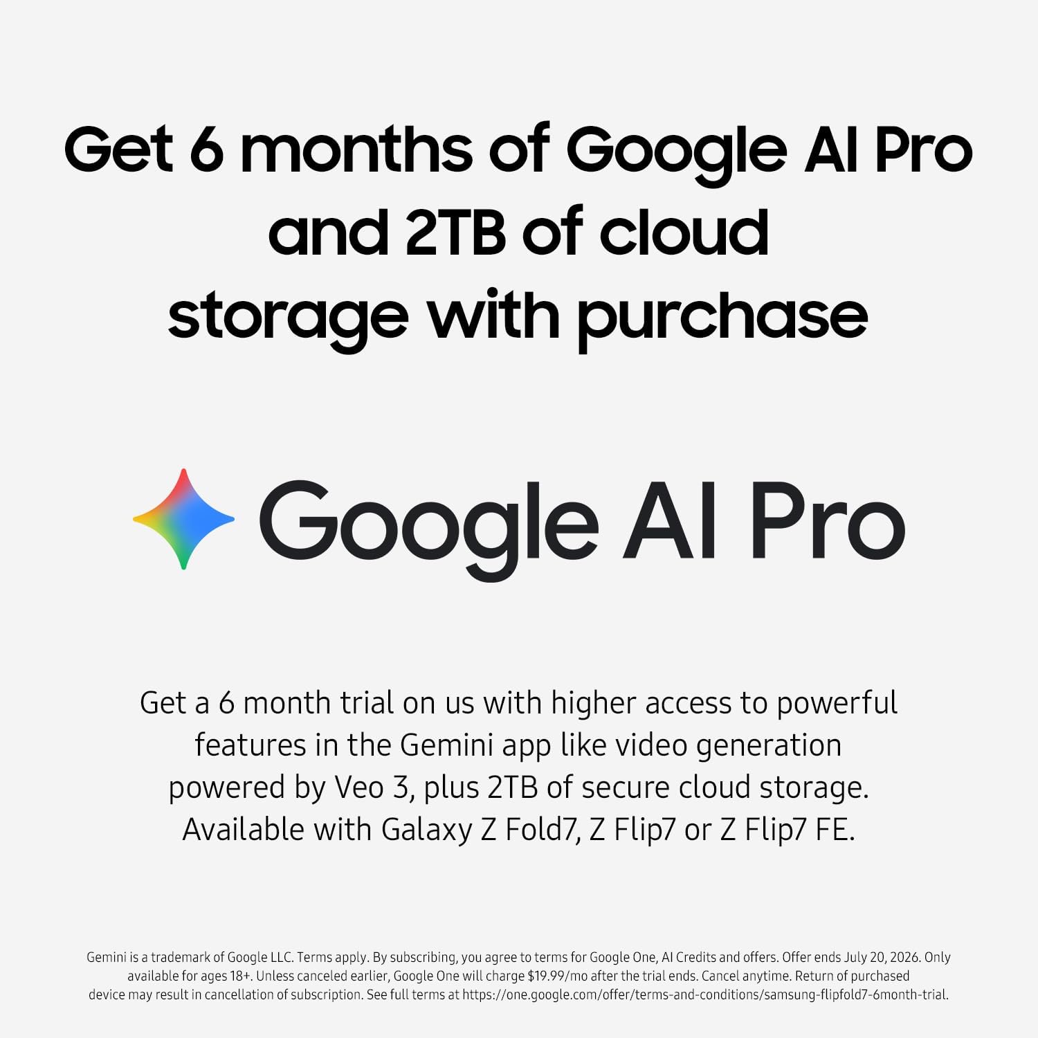 OPEN LESS. DO MORE: With Gemini Live and your favorite apps on FlexWindow, Galaxy Z Flip7 FE does more before you even open it.¹