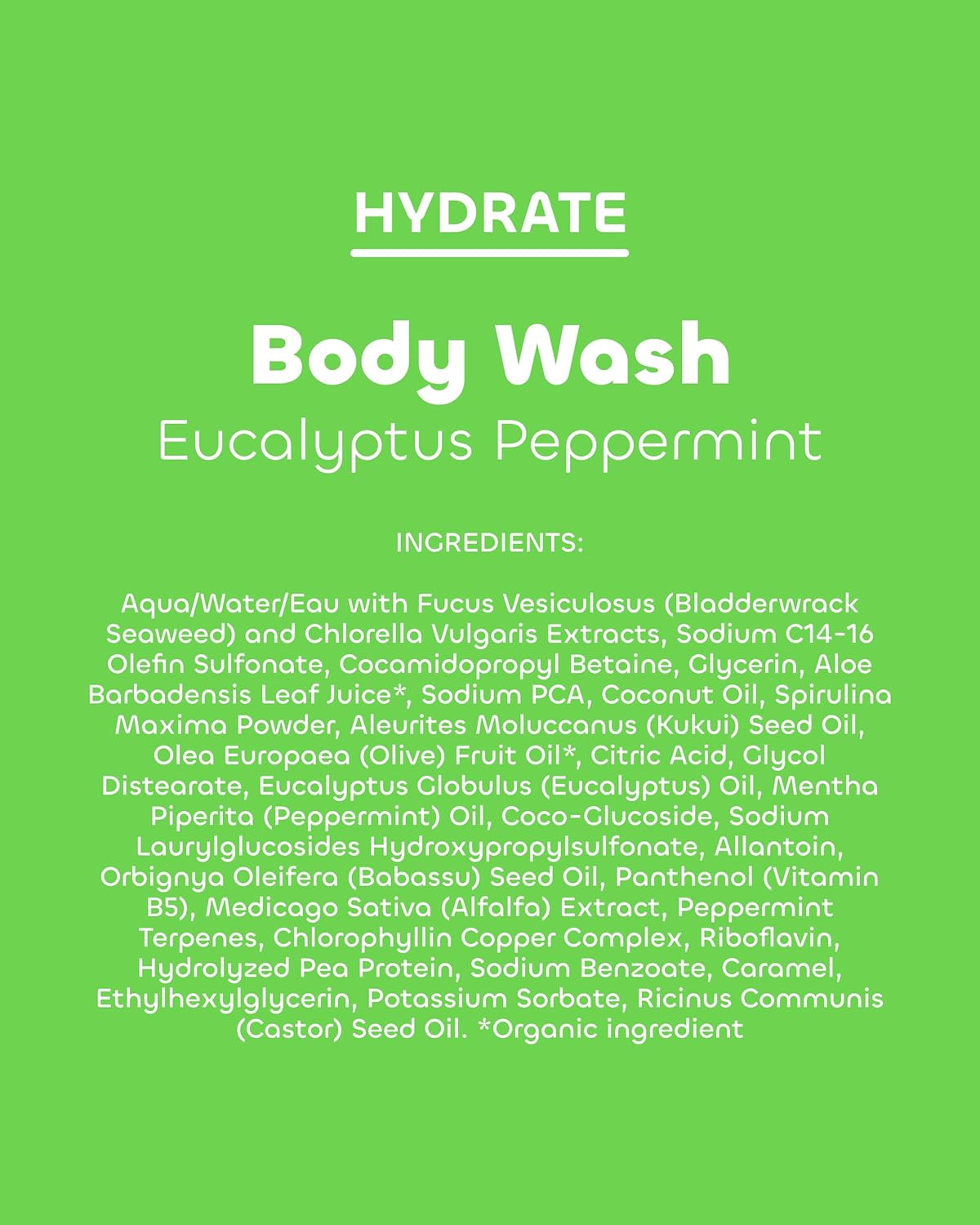 Essential Moisture: With antioxidant-rich blue green algae, Hawaiian kukui oil, aloe vera and sustainably harvested Atlantic seaweed, this body wash cleanses while gently hydrating and restoring skin