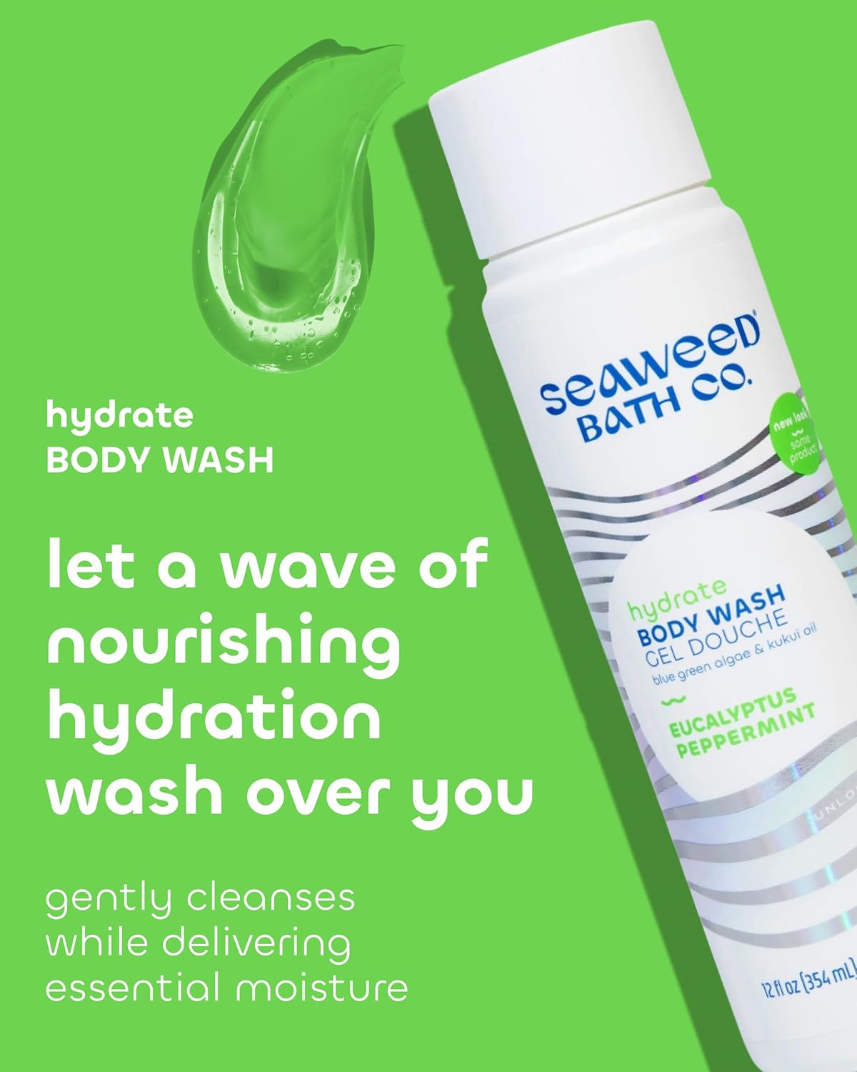 Unlock the magic of the sea with Seaweed Bath Co. Hydrate Body Wash. This body wash is made with sustainably harvested Atlantic seaweed and vitamin-rich blue green algae plus a nourishing blend of Hawaiian kukui and coconut oils to leave skin silky smooth. Inspired by the idea that nature already knows, we started with a centuries old remedy – seaweed baths – while on a personal journey to find a better troubled skin solution. Since then, Seaweed Bath Co. has continued to use sustainable practices to unlock the nourishing and restorative gifts of the ocean, harnessing its benefits in every product we make. We proudly support ocean conservation through partnerships with marine mammal rescue and rehabilitation organizations