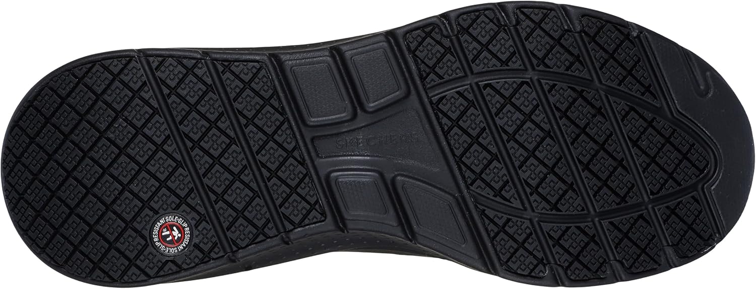 Elevate your workday comfort with these Skechers Men’s Work Shoes. Perfect for professionals seeking non slip work shoes for men, these athletic safety sneakers combine durability with all-day support. The Arch Fit 2.0 design features podiatrist-certified arch support and slip-resistant outsoles, making these work shoes for men ideal for demanding workplace environments. With a durable mesh and leather overlay upper, these shoes deliver the perfect blend of comfort and workplace safety.