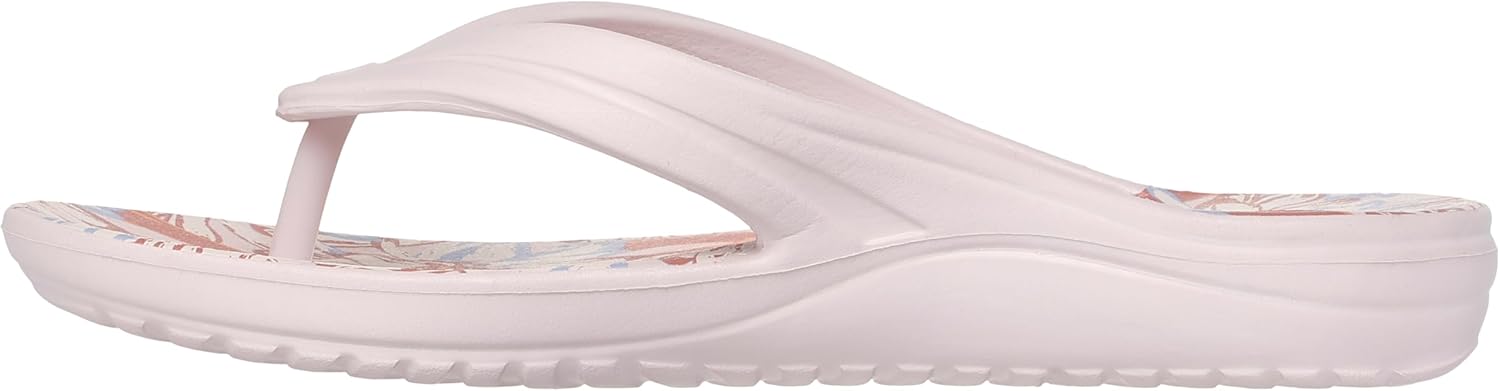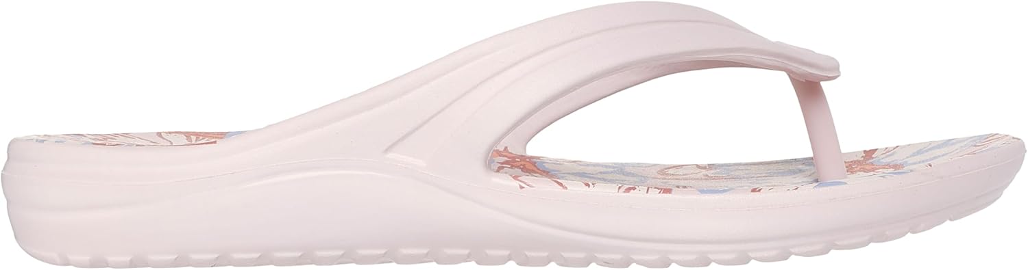 Step into comfort with these BOBS Foamies Bay Breeze Island Kiss sandals. These bobs womens sandals feature a molded 3-point design with a beautiful floral print footbed for style and comfort. The lightweight EVA upper combines with a cushioned comfort footbed to create the perfect casual sandal. These bobs women shoes are machine washable and feature anti-odor properties, making them ideal for everyday wear. The flexible traction outsole provides reliable grip, while the 1/2-inch heel height offers subtle elevation.