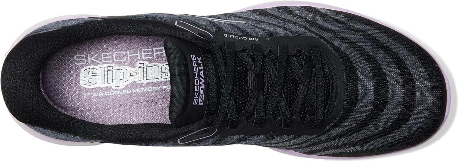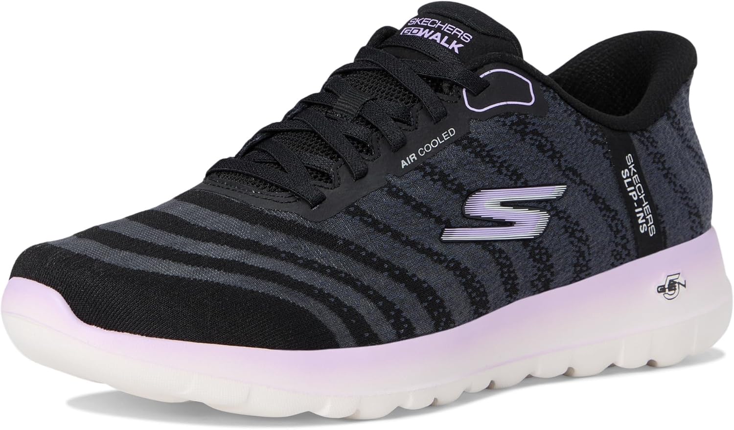 Step up your routine with easygoing comfort in the Skechers Slip-ins: GO WALK Joy – Juneau slip on sneakers for women. Designed with a Heel Pillow, this fixed laced vegan slip-on features an engineered mesh upper in a striped pattern with a cushioned Skechers Air-Cooled Memory Foam insole and lightweight 5-GEN cushioning. The slip on shoes for women have a flexible traction outsole, 1 1/4-inch heel height, and are machine washable.