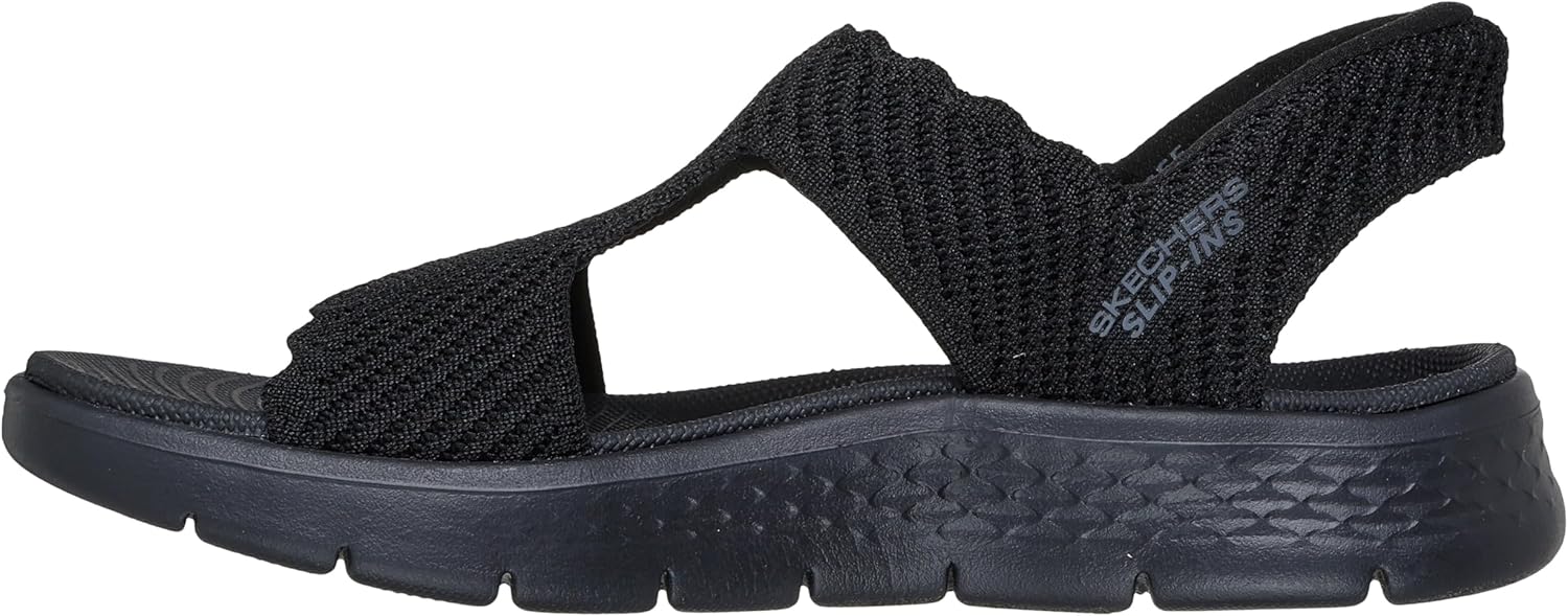 Experience ultimate comfort with these womens sandals from Skechers. The GO WALK Flex Sandal Ariel combines style and functionality, featuring a scalloped knit upper and innovative Ultra Go cushioning. Perfect for walking and everyday wear, these sandals for women offer a contoured Goga Mat comfort footbed and a flexible traction outsole. The slip-on design with Heel Pillow technology ensures a secure fit, while the vegan construction and machine washable feature make these sandals both ethical and practical.