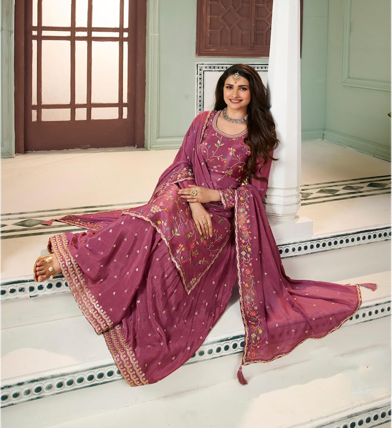Stylish Women Wear Pakistani Indian Designer Stitched Salwar Kameez Palazzo Suits (US, Numeric, 54, Regular, Regular, Choice 5)
